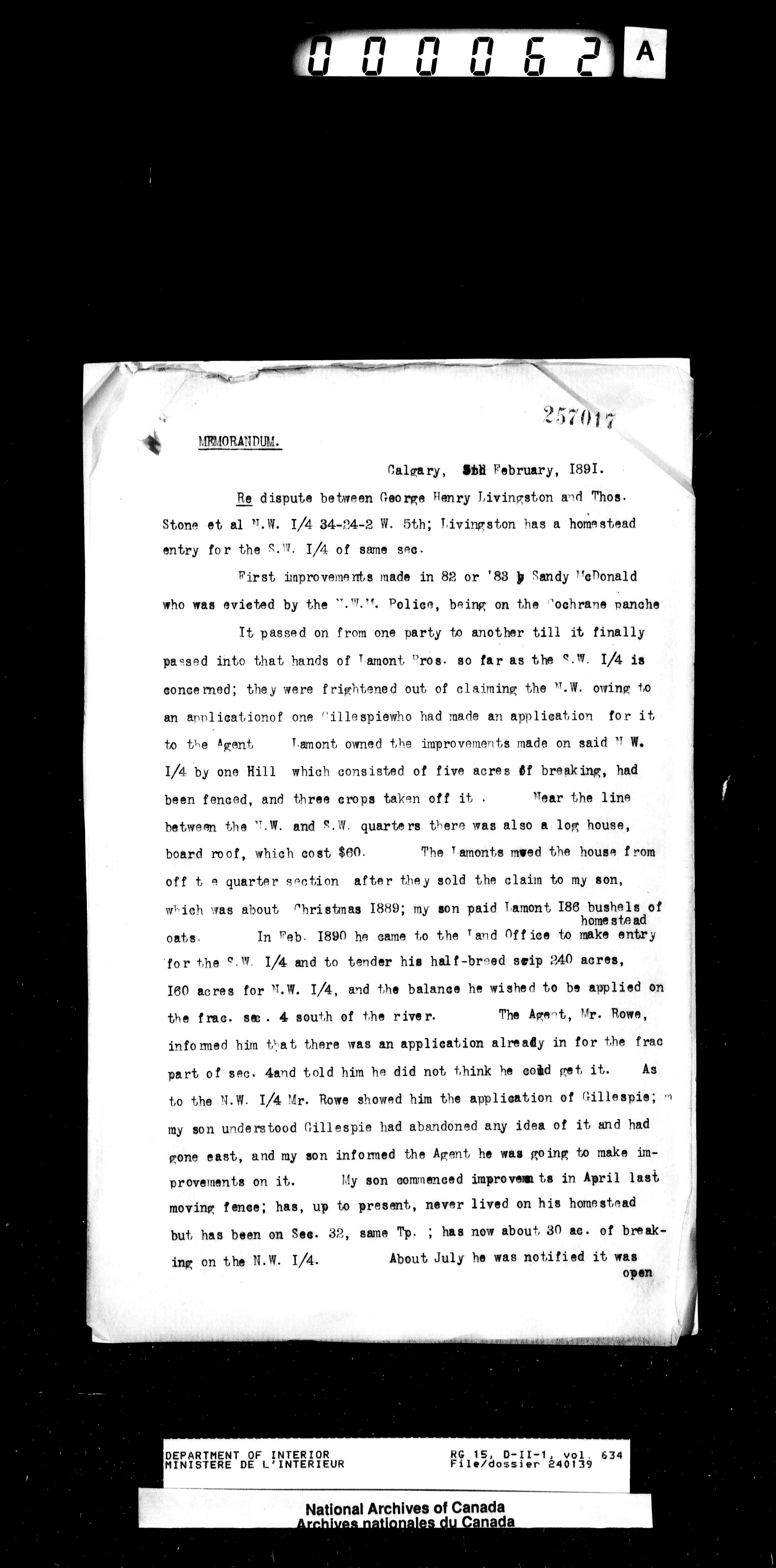 Central registry subject files created by the Dominion Lands Branch - 13883