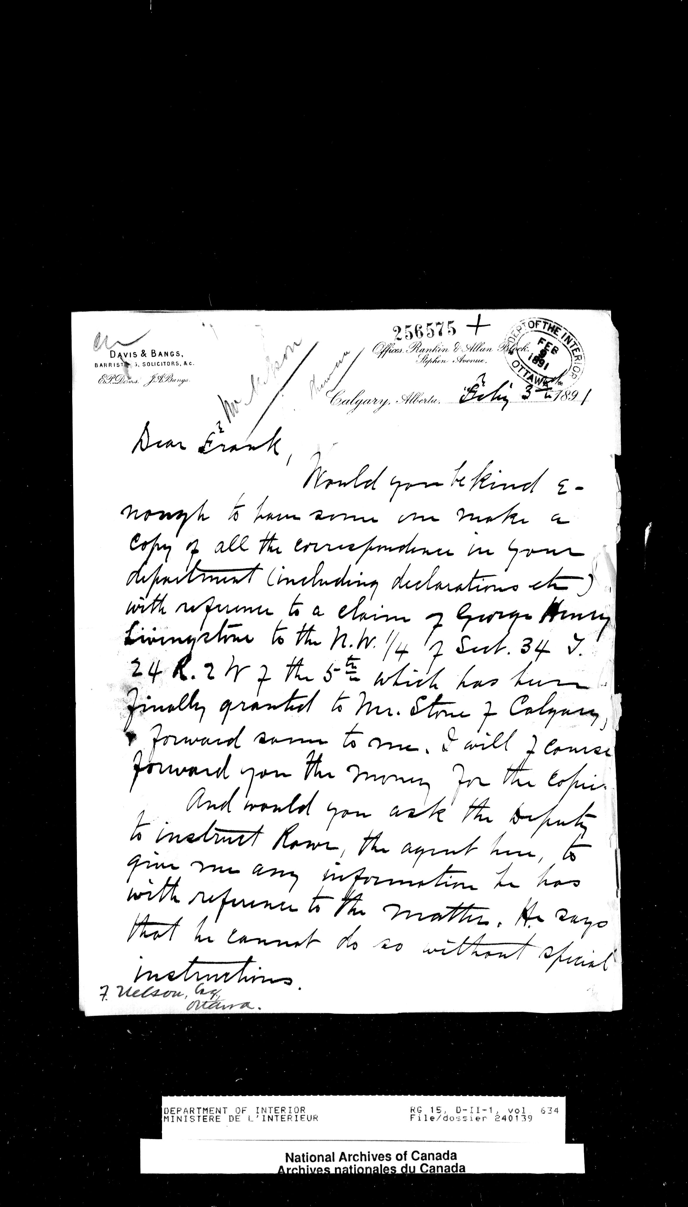 Central registry subject files created by the Dominion Lands Branch - 13883