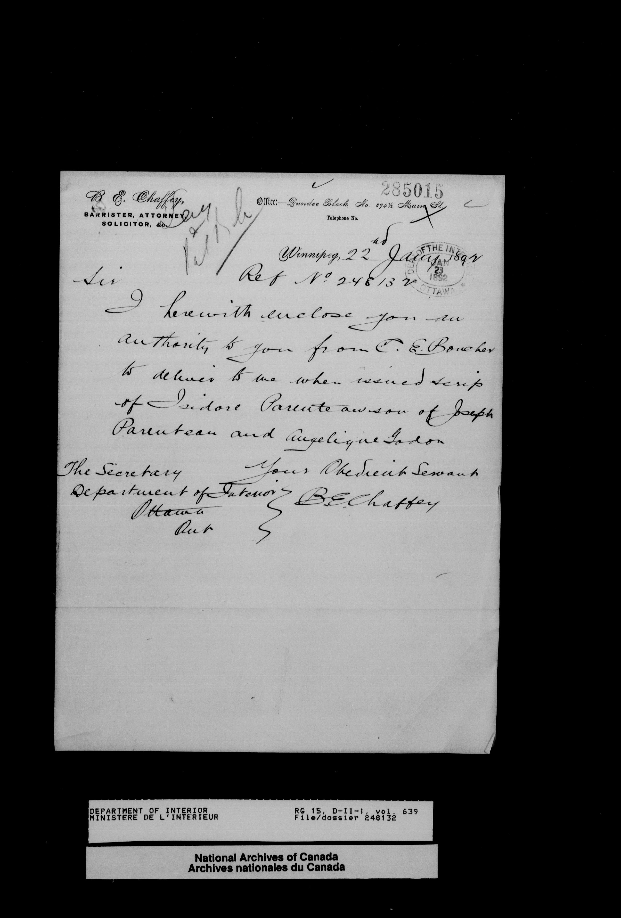 Central registry subject files created by the Dominion Lands Branch - 13887