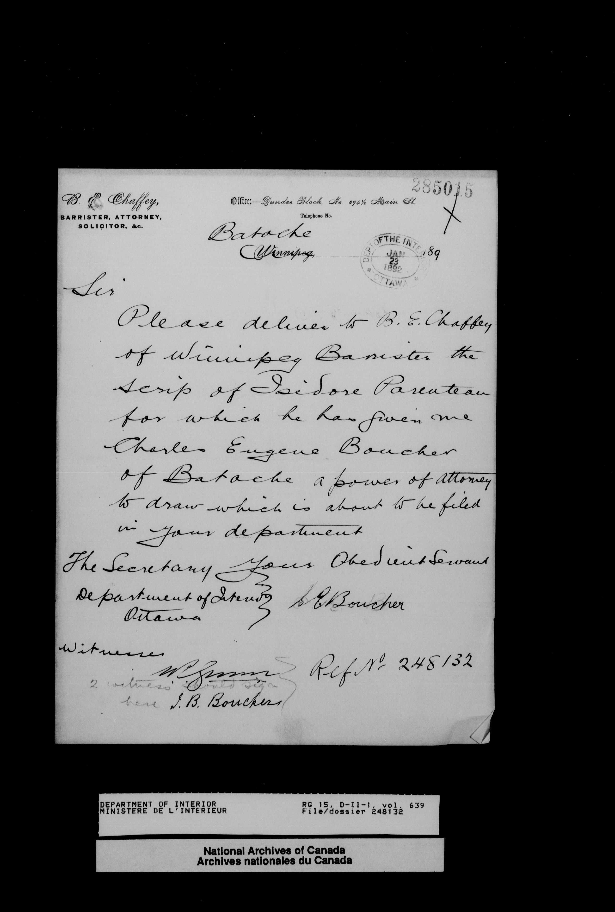 Central registry subject files created by the Dominion Lands Branch - 13887