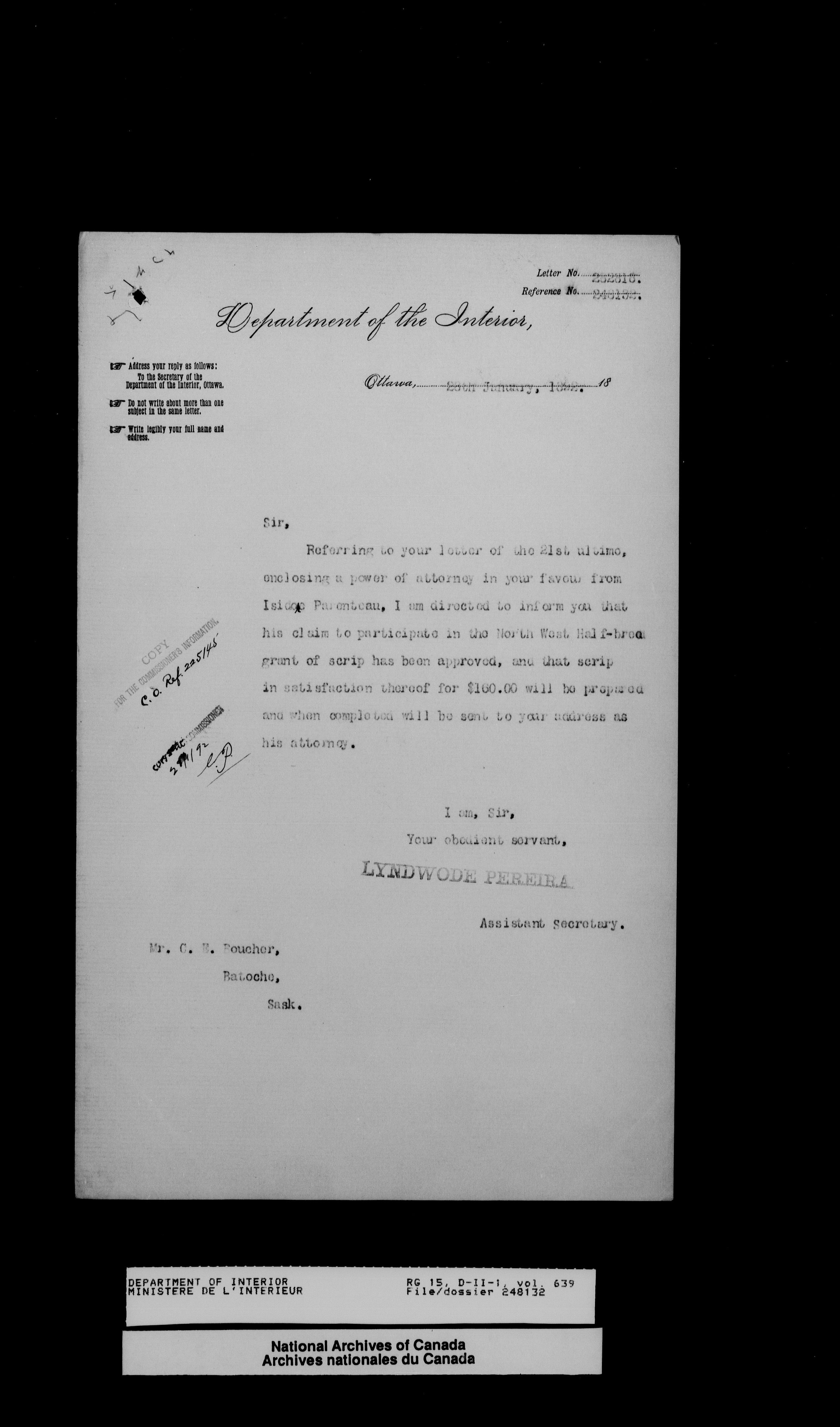 Central registry subject files created by the Dominion Lands Branch - 13887