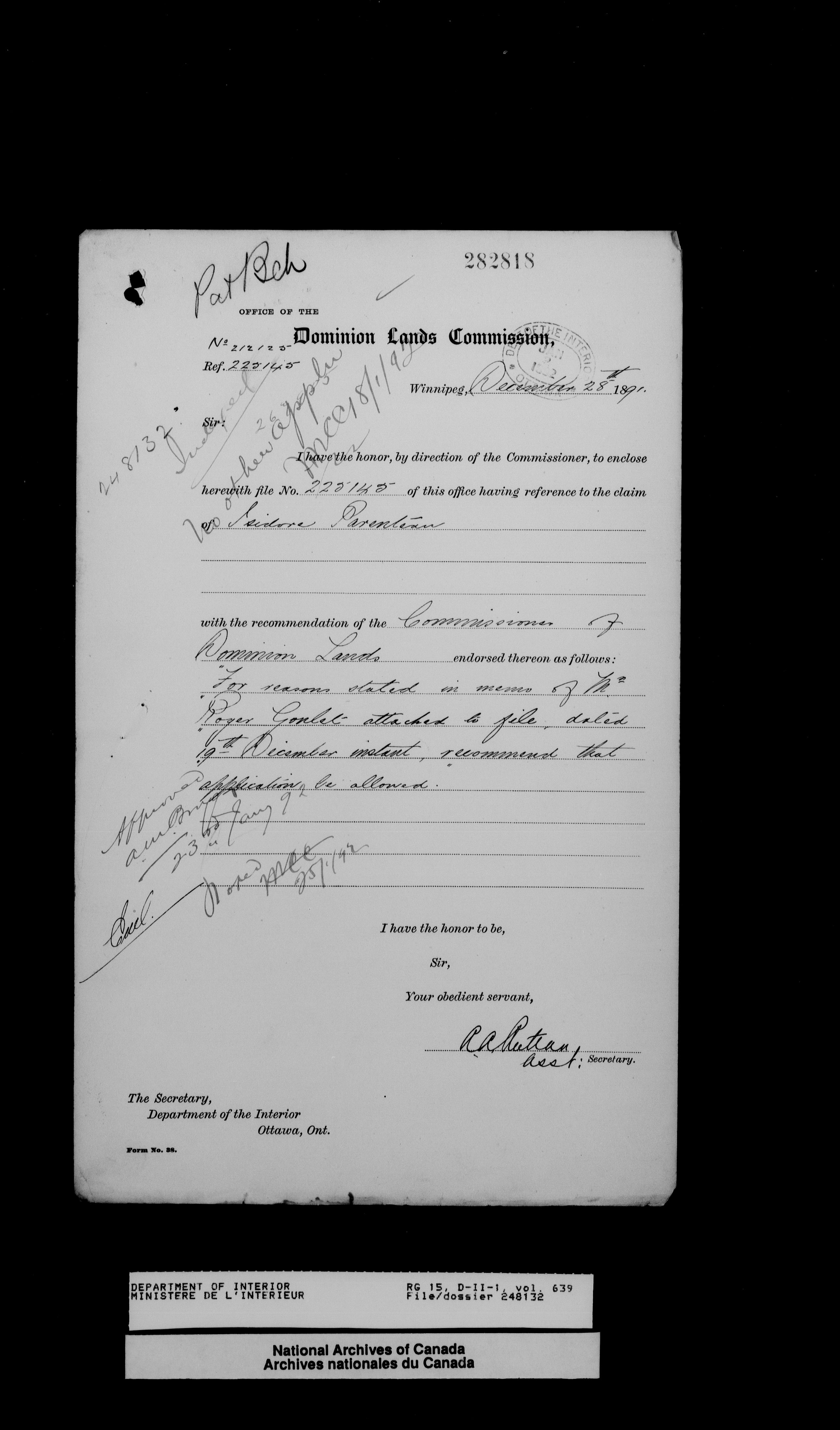 Central registry subject files created by the Dominion Lands Branch - 13887