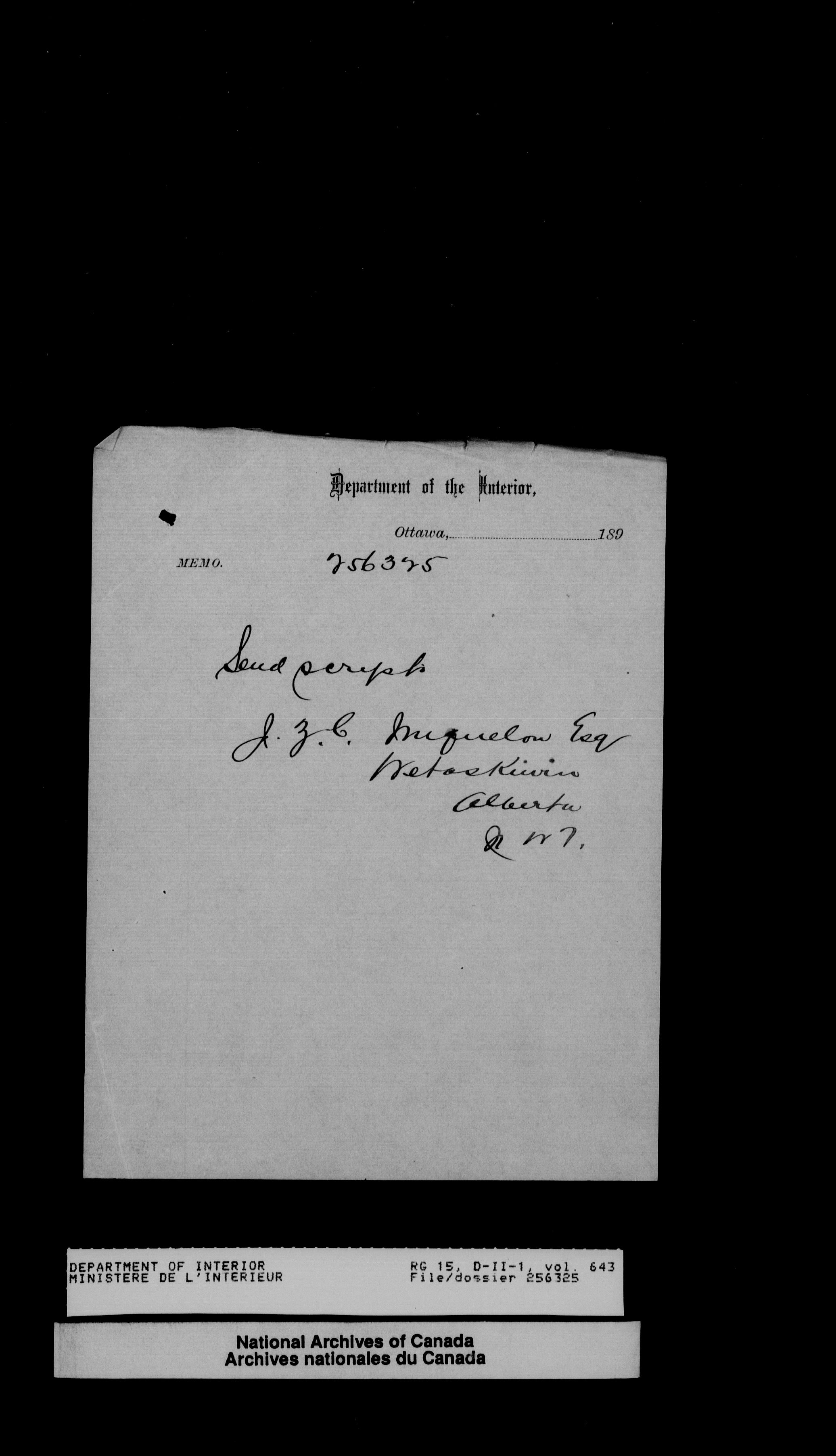 Central registry subject files created by the Dominion Lands Branch - 13890