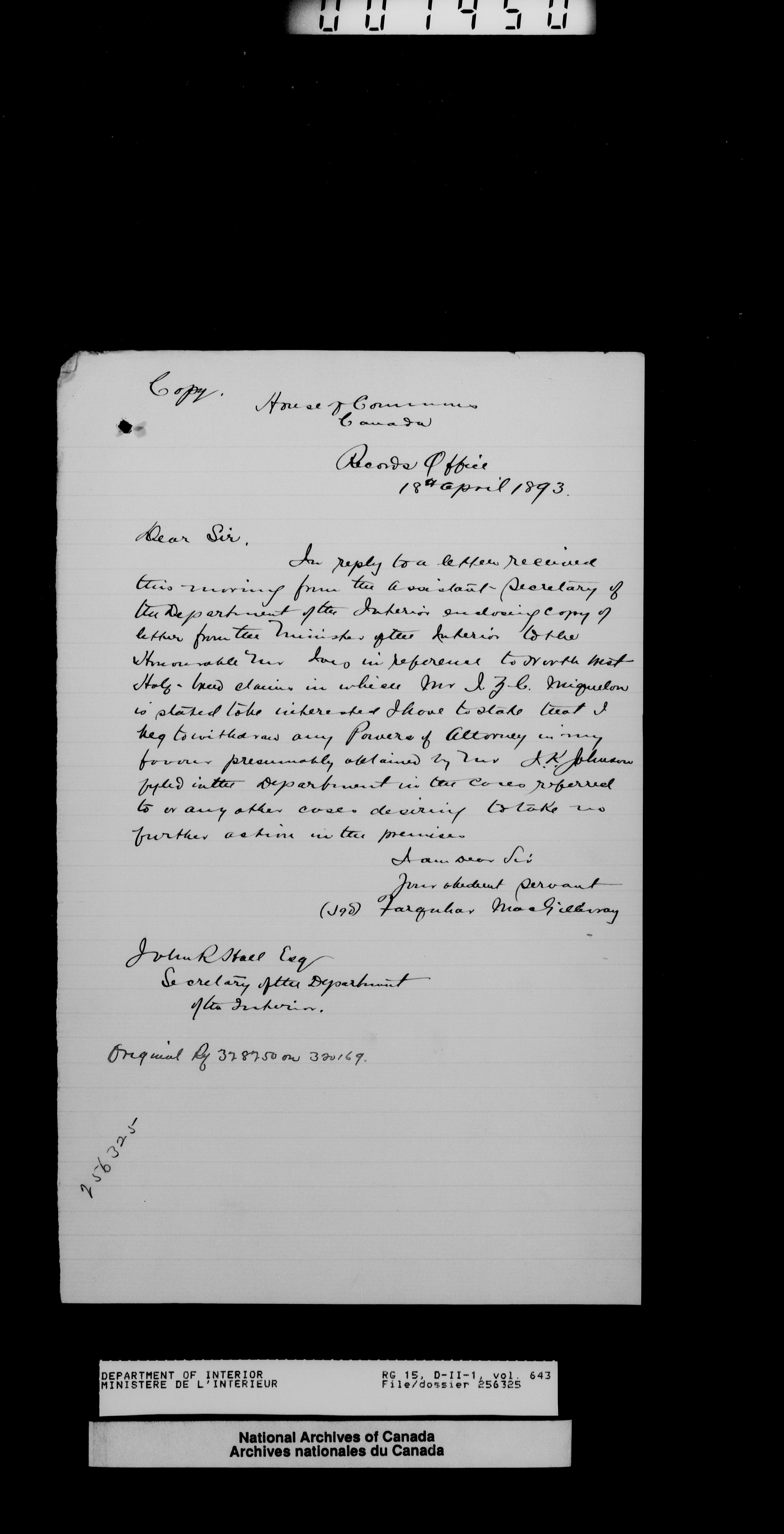 Central registry subject files created by the Dominion Lands Branch - 13890