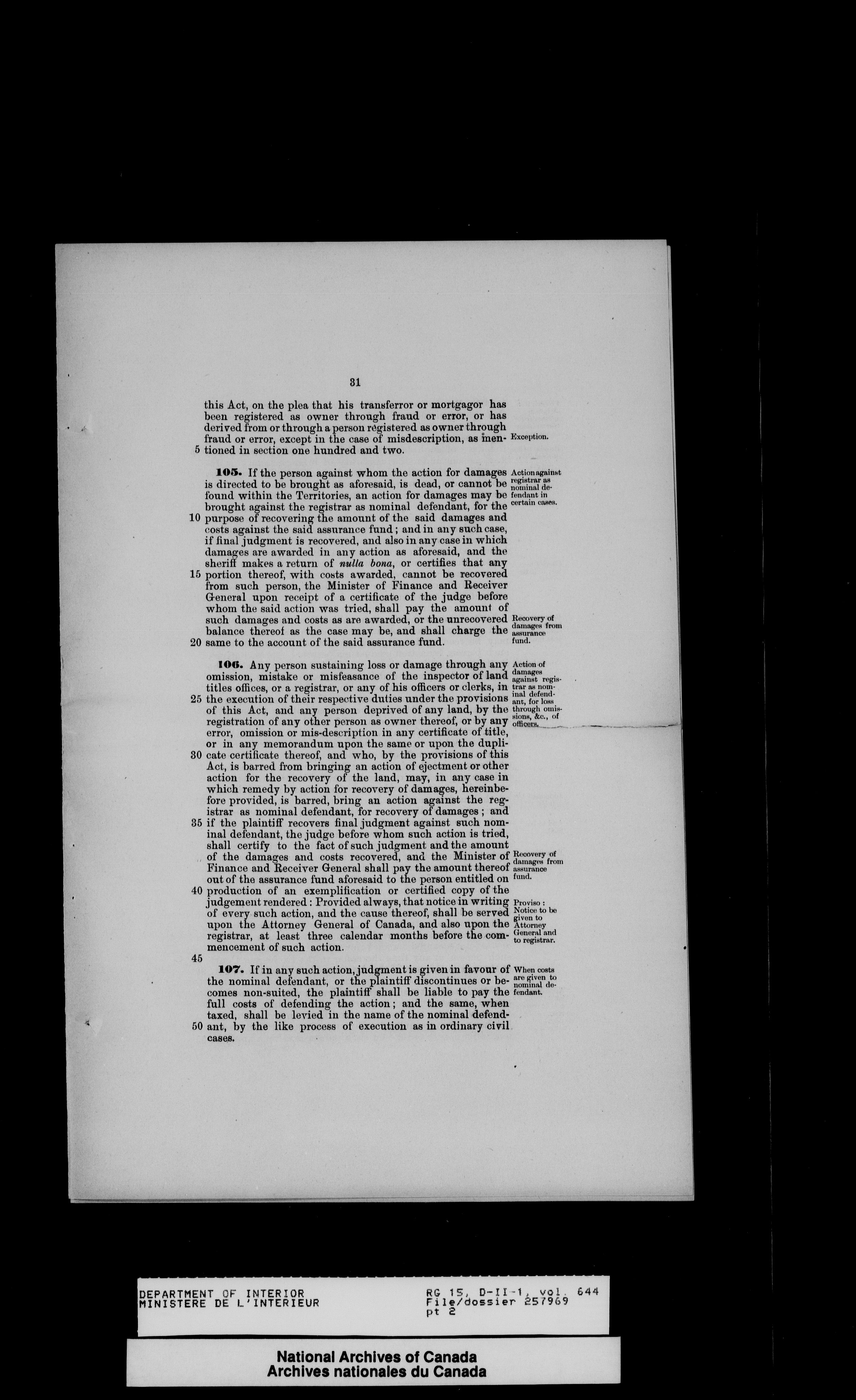 Central registry subject files created by the Dominion Lands Branch - 13892
