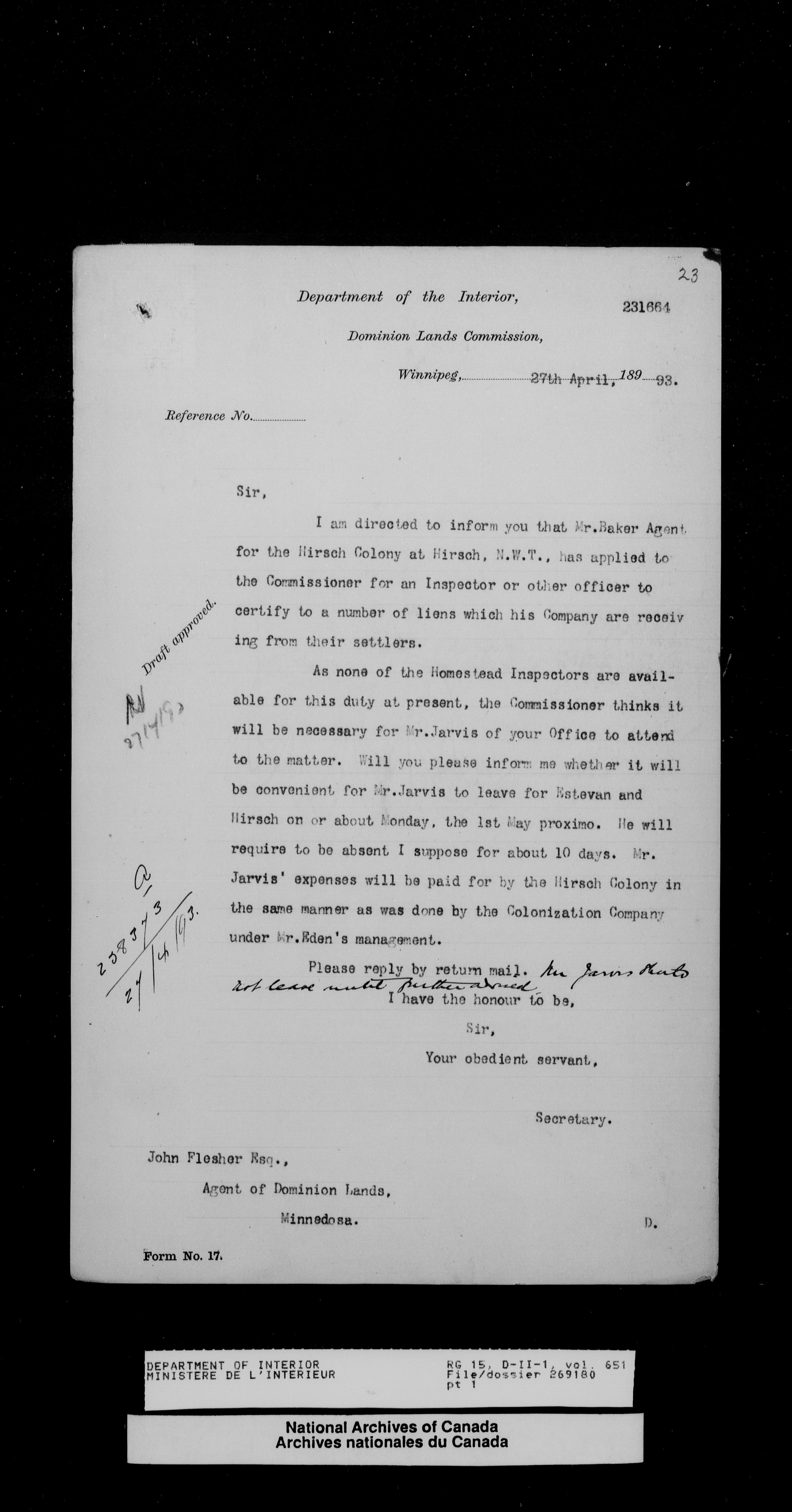 Central registry subject files created by the Dominion Lands Branch - 13898
