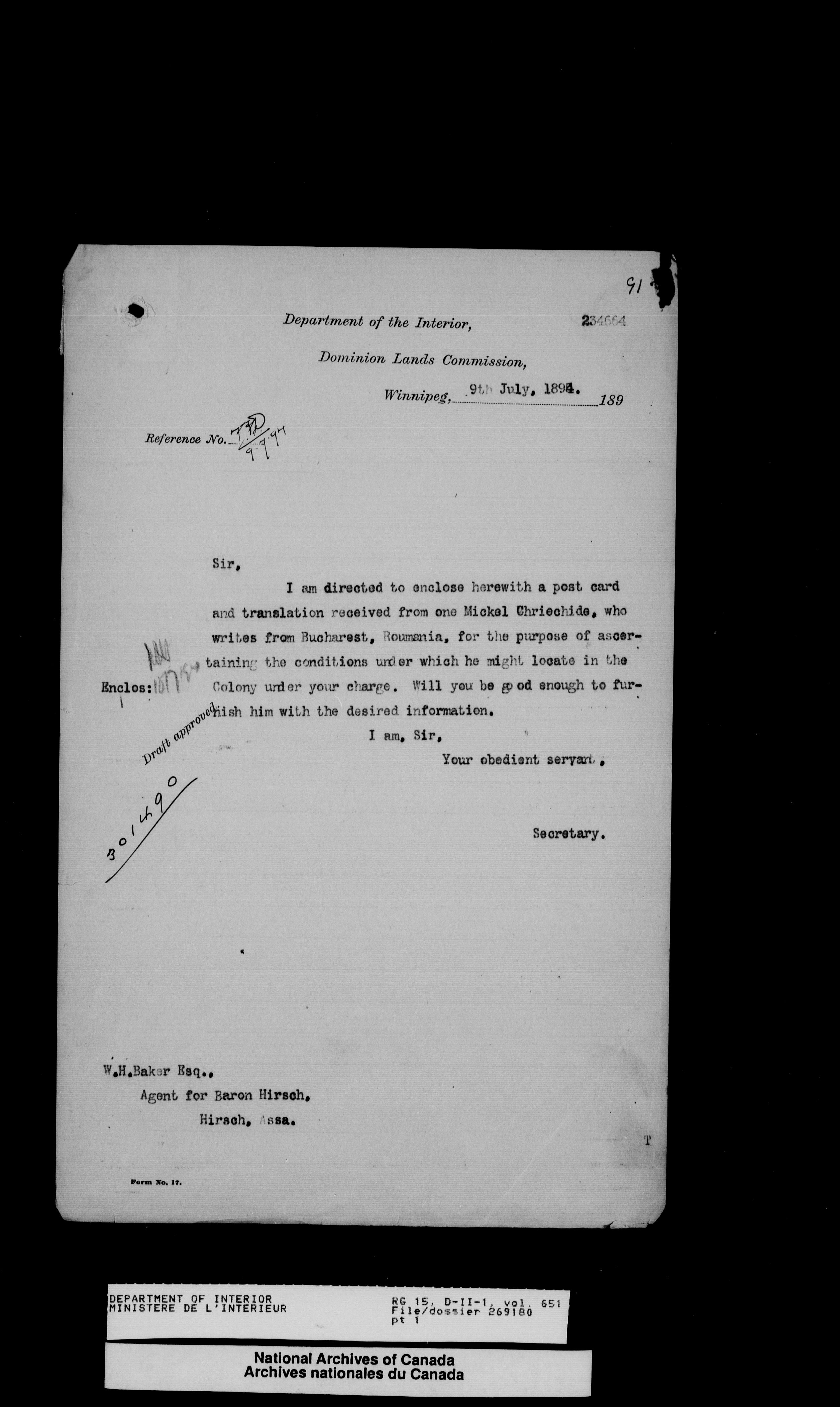 Central registry subject files created by the Dominion Lands Branch - 13899