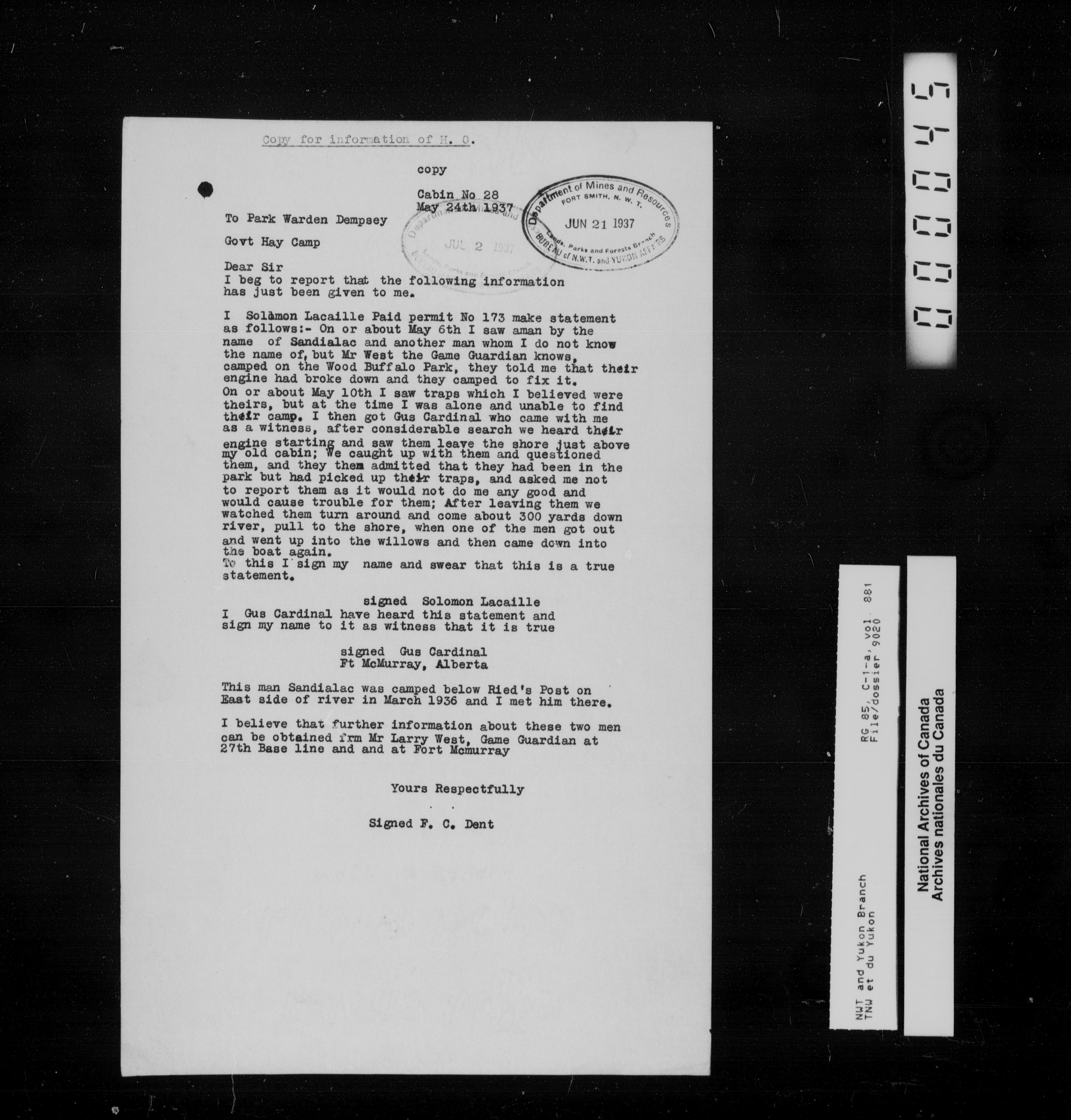Department of Indian Affairs : Northwest Territories and Yukon Branch, Central Registry files - 13903