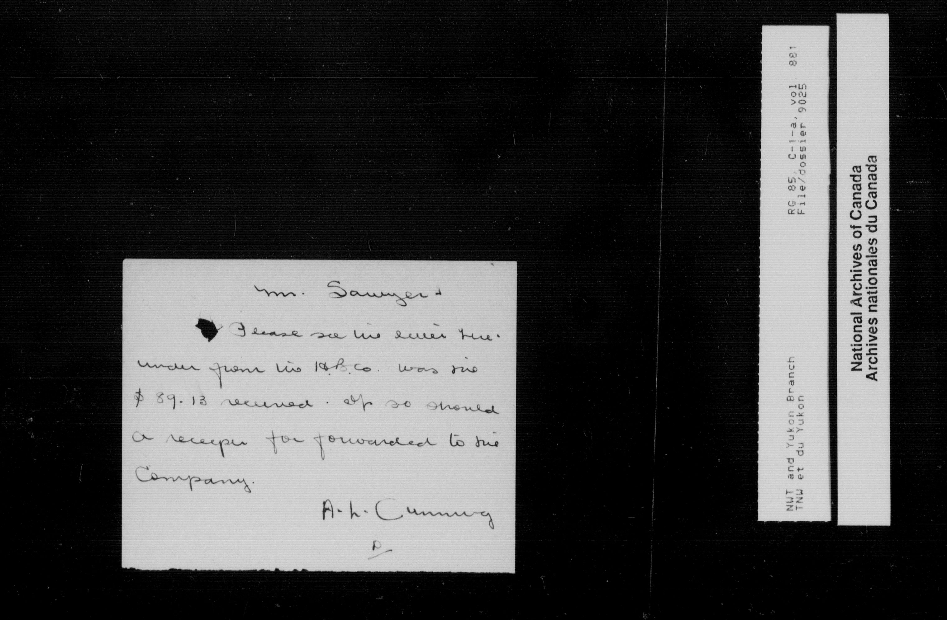 Department of Indian Affairs : Northwest Territories and Yukon Branch, Central Registry files - 13903