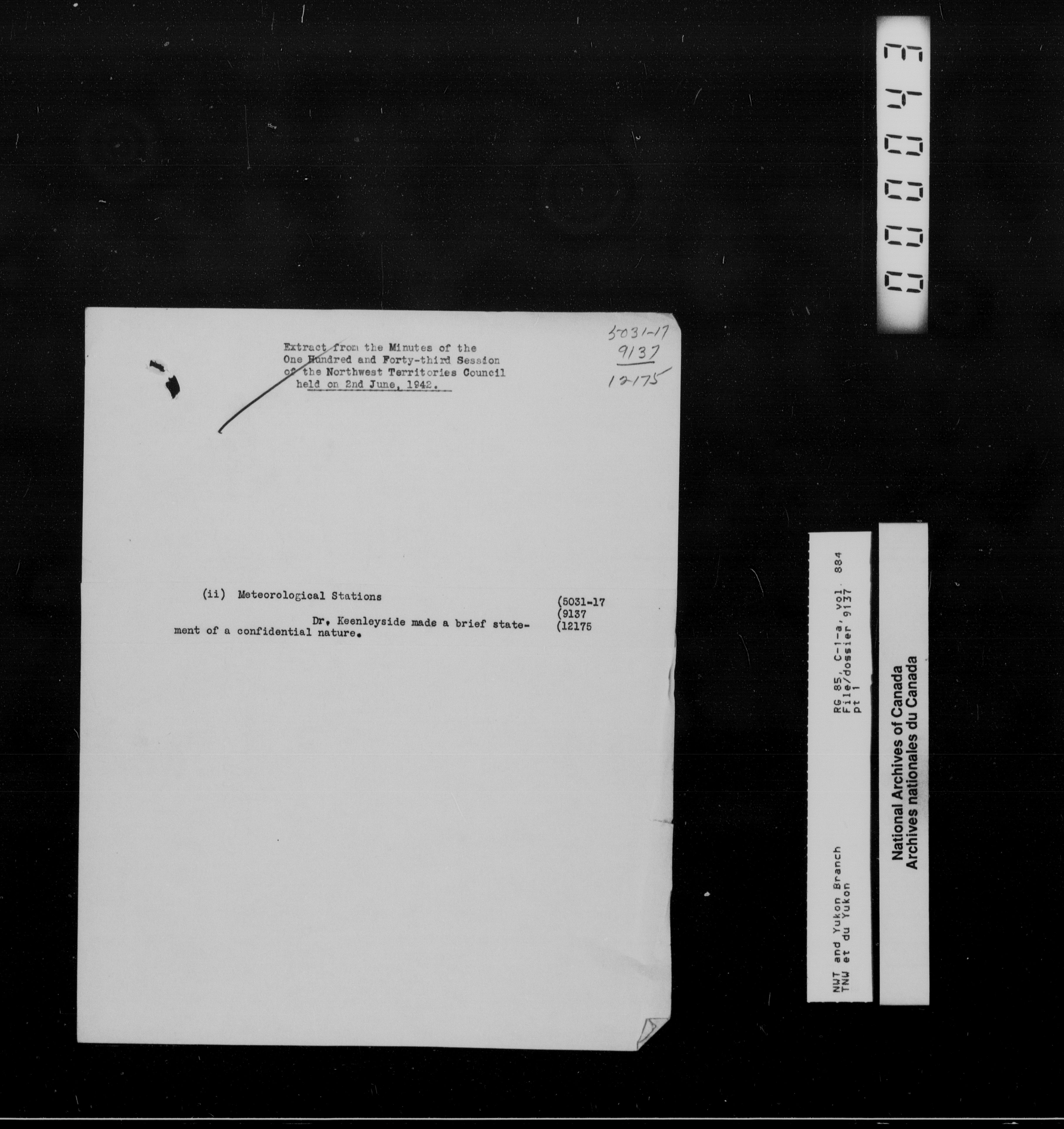 Department of Indian Affairs : Northwest Territories and Yukon Branch, Central Registry files - 13905