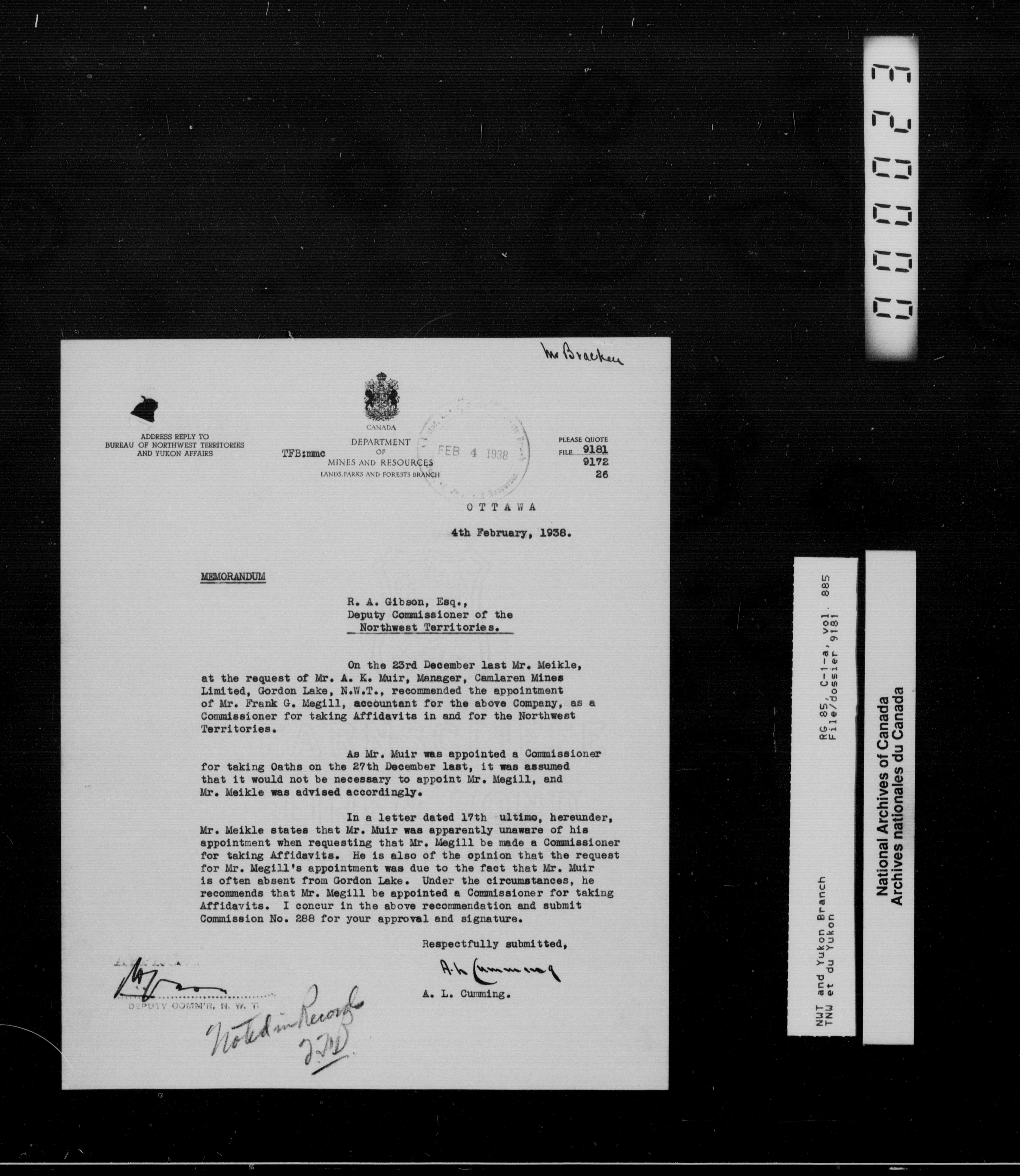 Department of Indian Affairs : Northwest Territories and Yukon Branch, Central Registry files - 13906