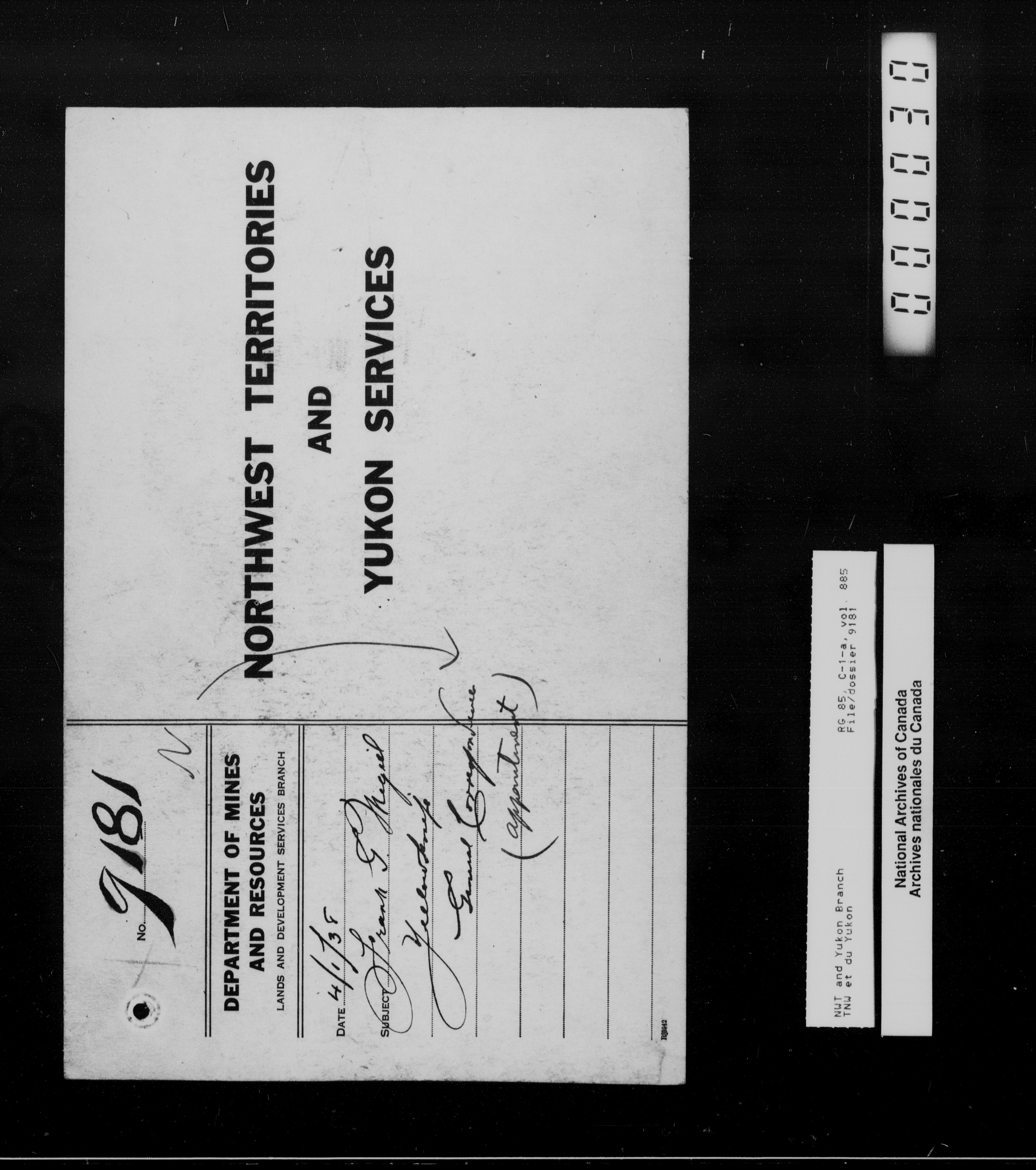 Department of Indian Affairs : Northwest Territories and Yukon Branch, Central Registry files - 13906