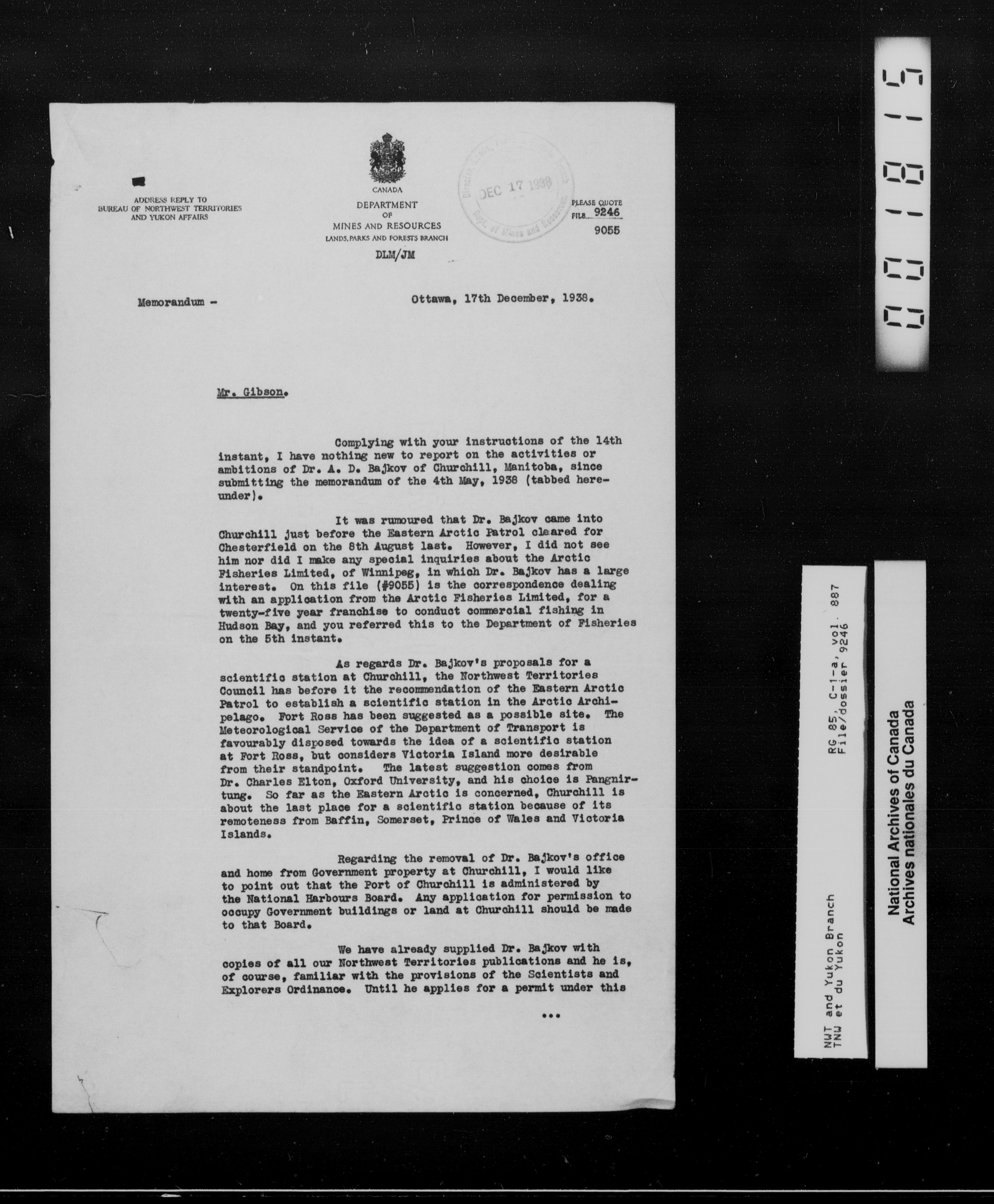 Department of Indian Affairs : Northwest Territories and Yukon Branch, Central Registry files - 13907