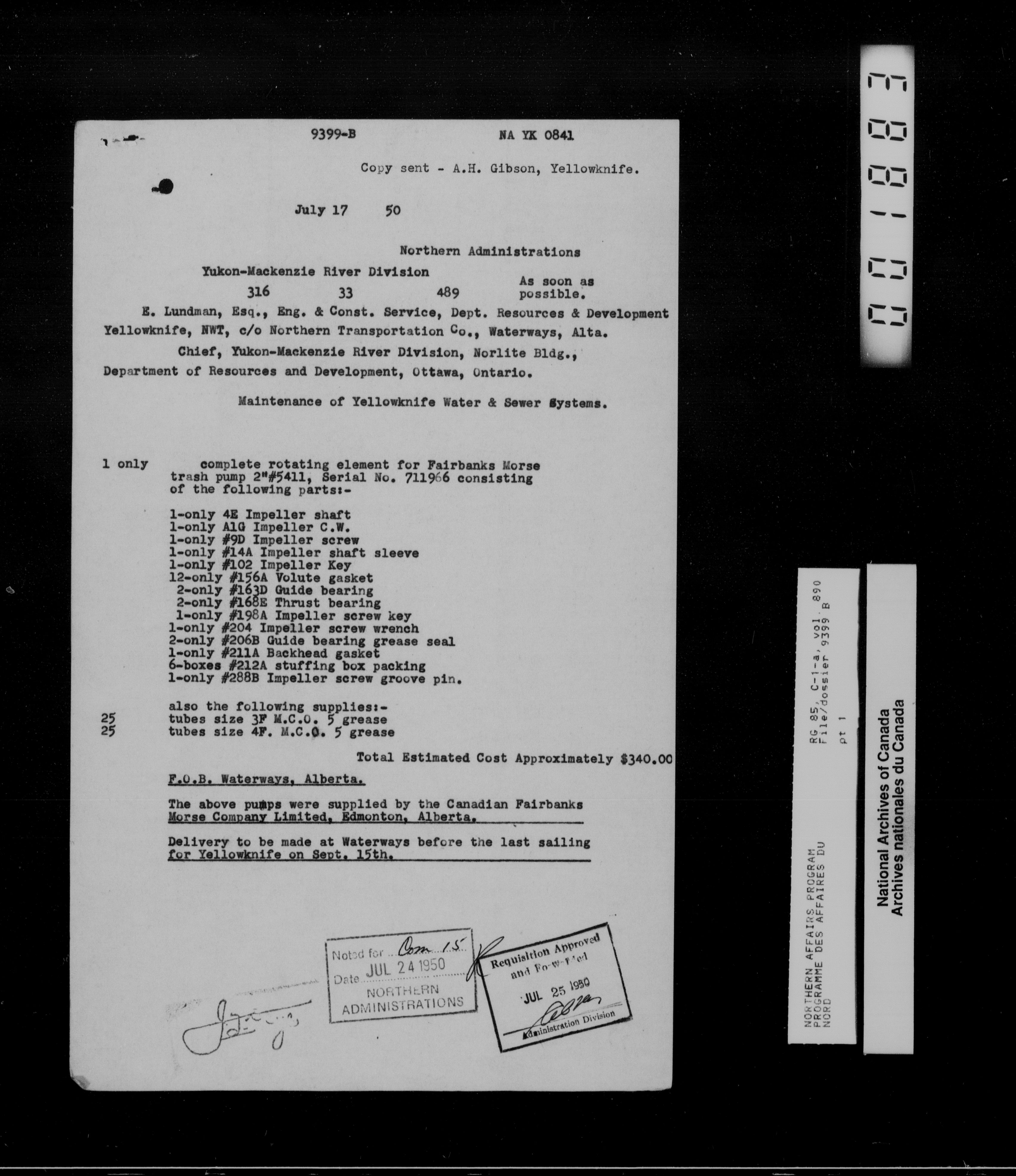 Department of Indian Affairs : Northwest Territories and Yukon Branch, Central Registry files - 13909