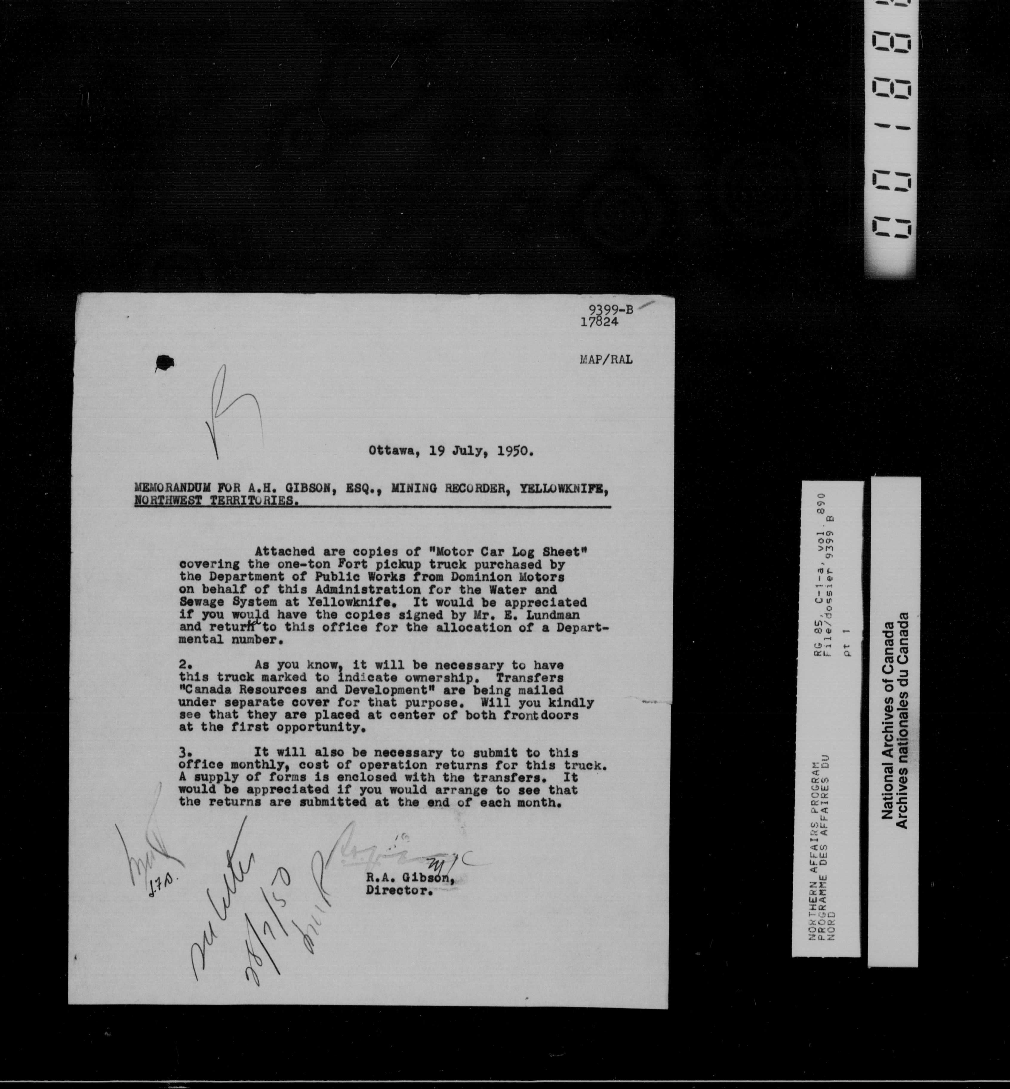 Department of Indian Affairs : Northwest Territories and Yukon Branch, Central Registry files - 13909