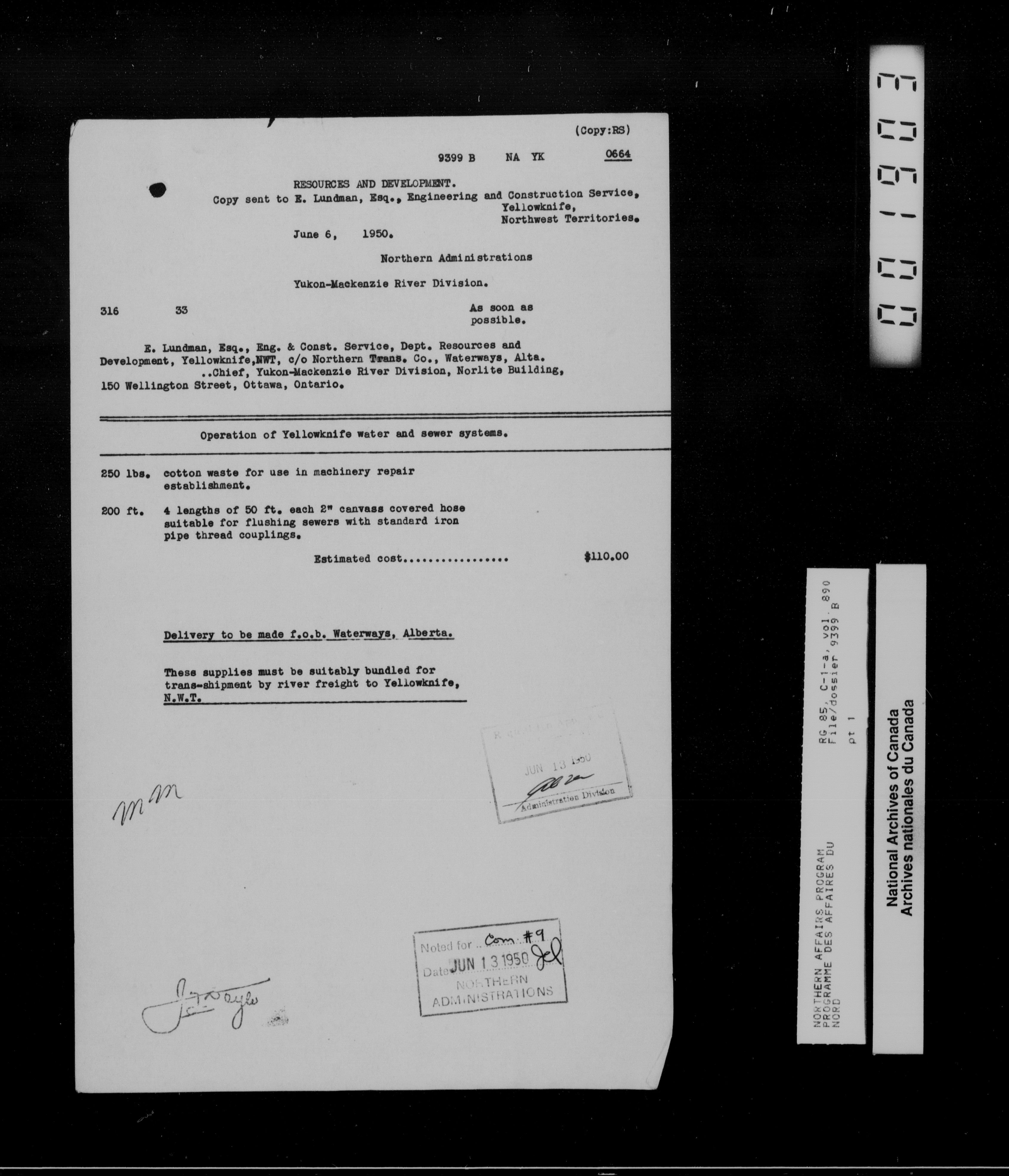 Department of Indian Affairs : Northwest Territories and Yukon Branch, Central Registry files - 13909
