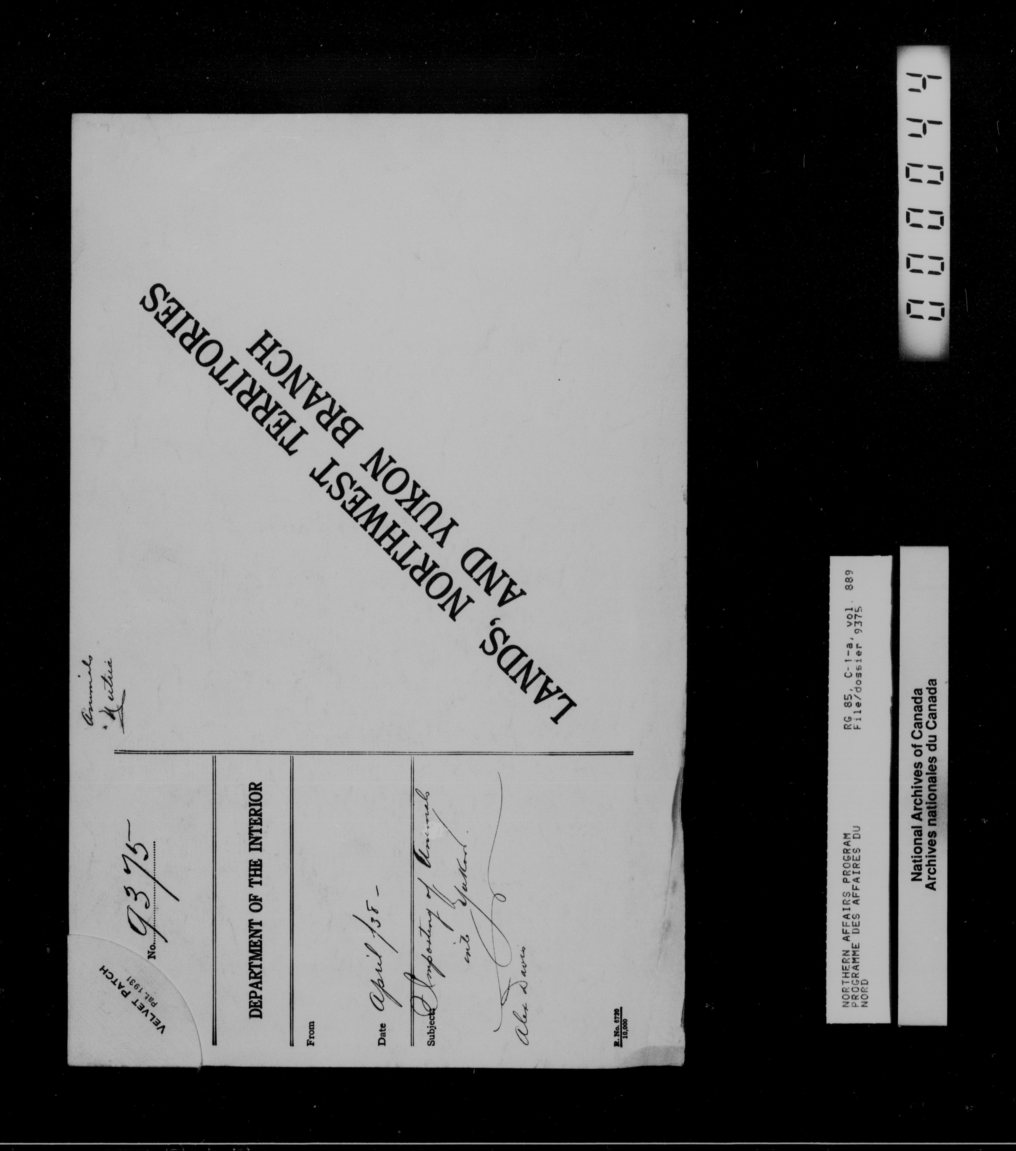 Department of Indian Affairs : Northwest Territories and Yukon Branch, Central Registry files - 13909