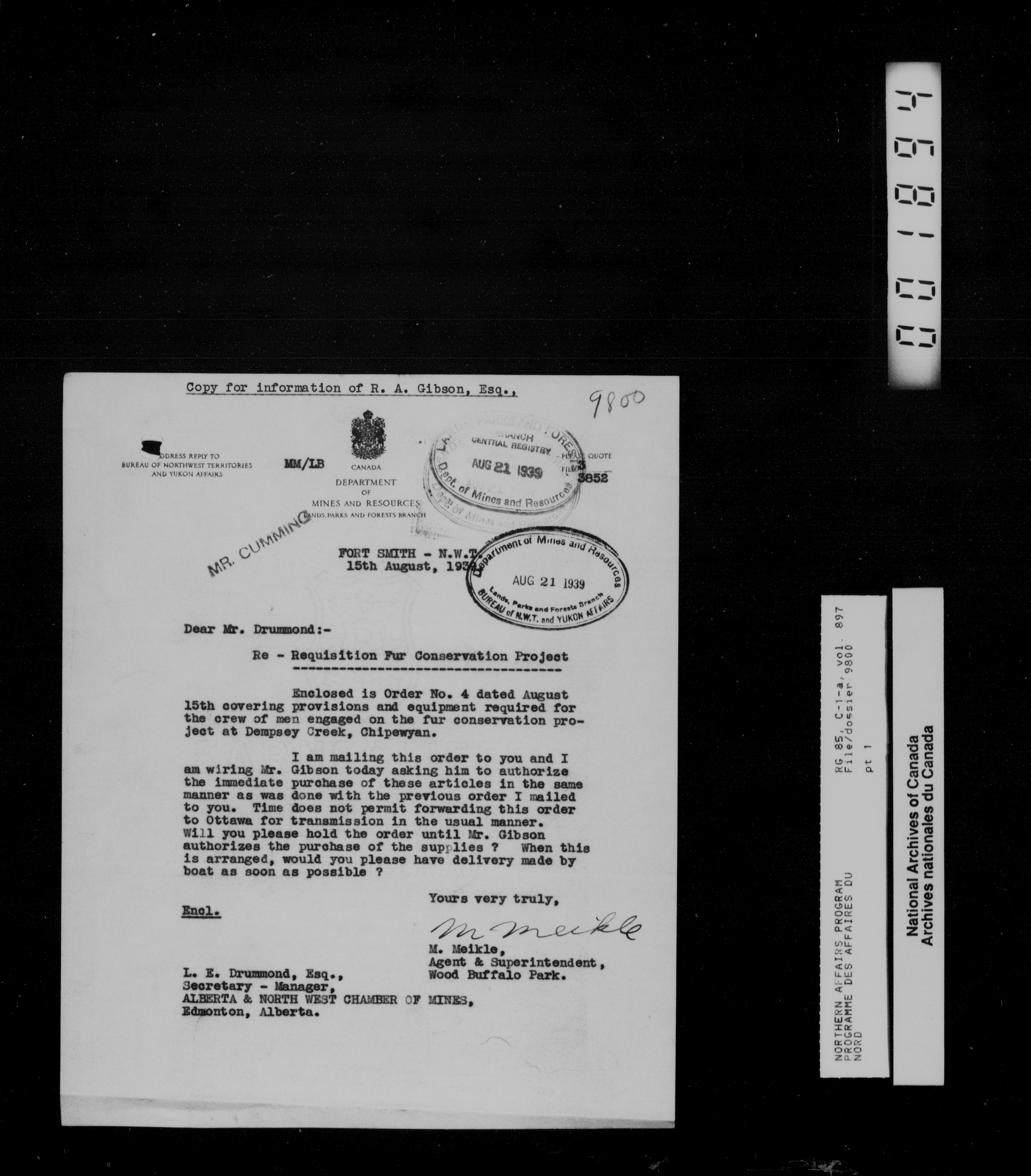 Department of Indian Affairs : Northwest Territories and Yukon Branch, Central Registry files - 13914