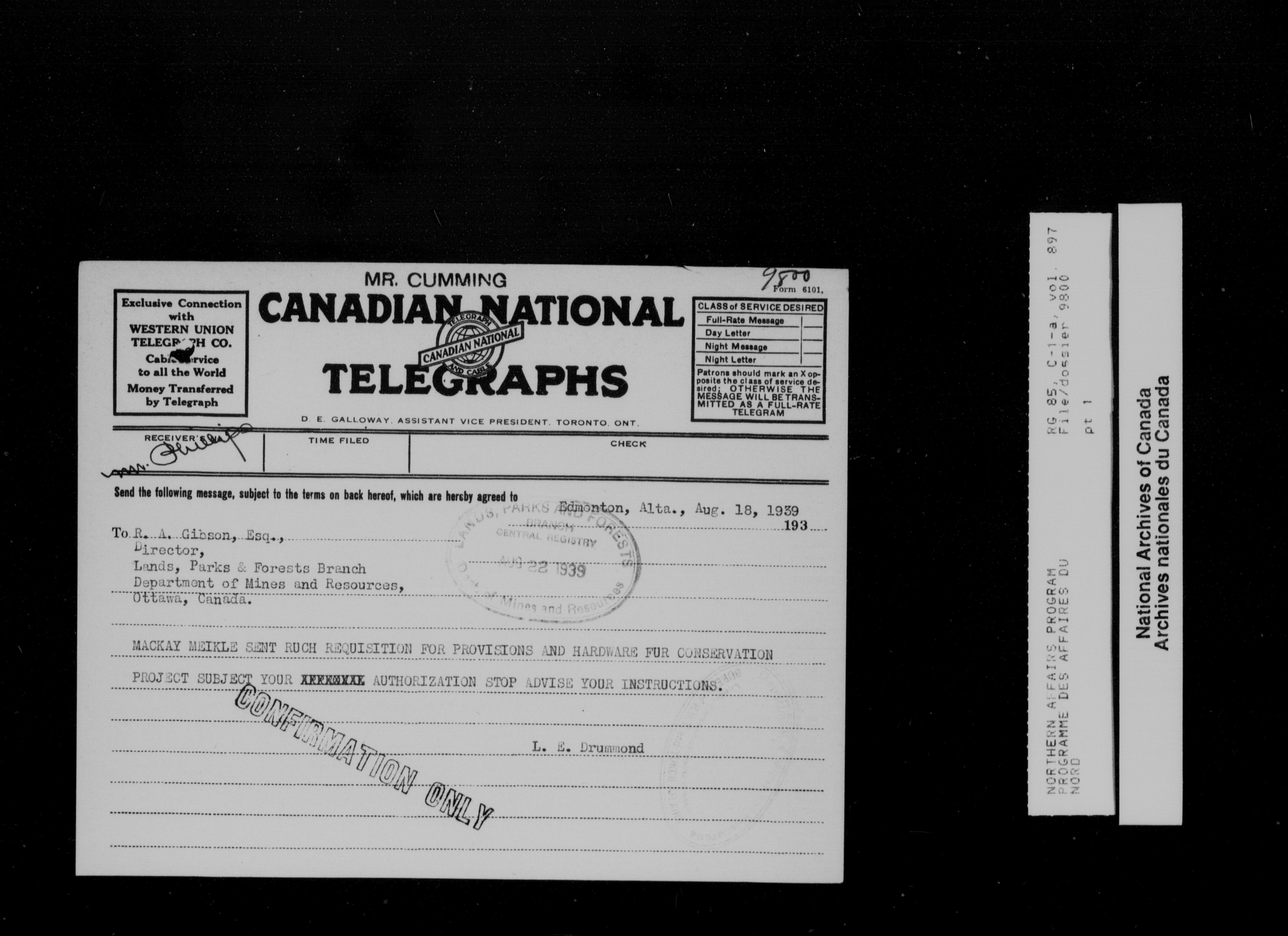 Department of Indian Affairs : Northwest Territories and Yukon Branch : T-13914