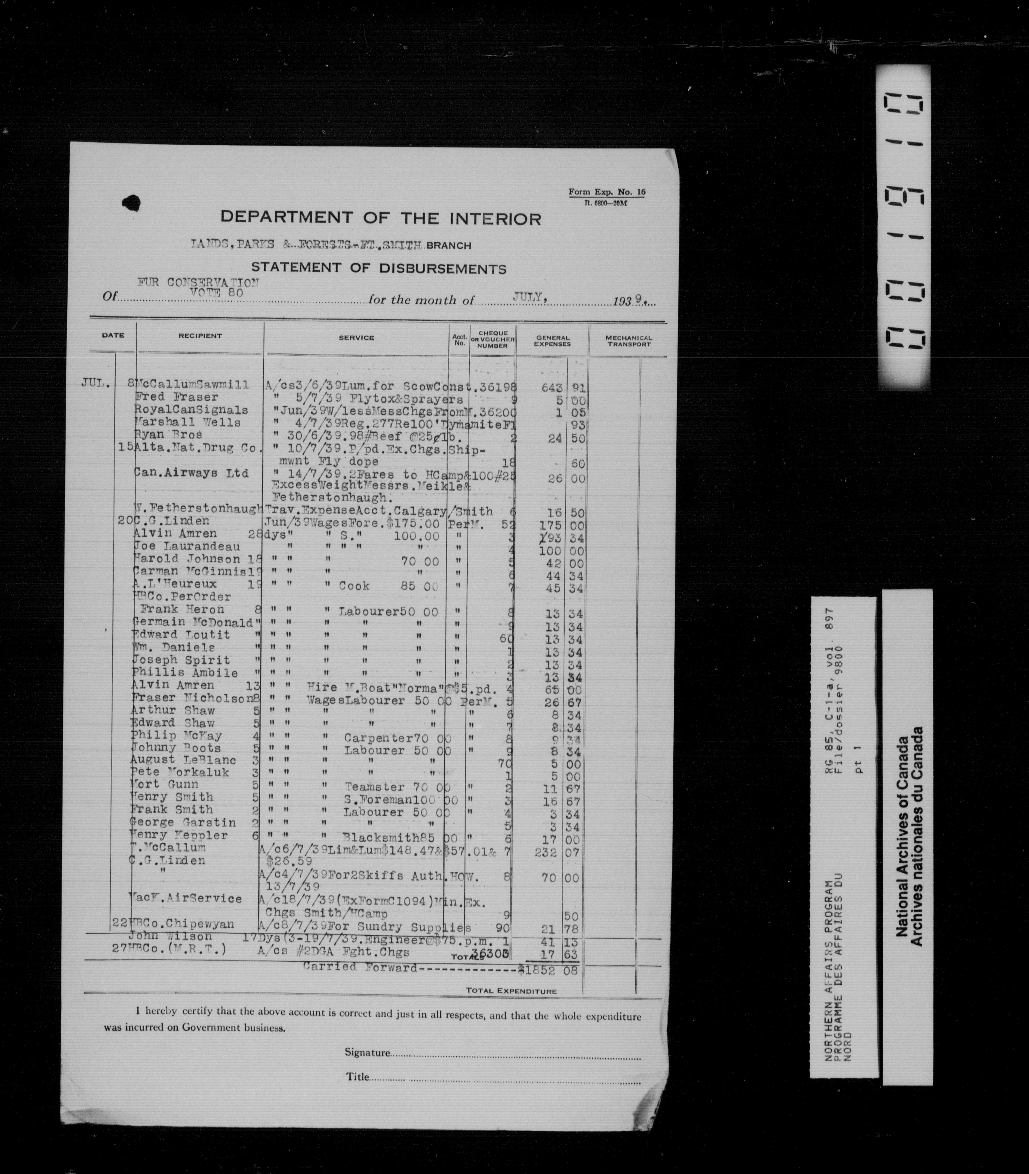 Department of Indian Affairs : Northwest Territories and Yukon Branch : T-13914