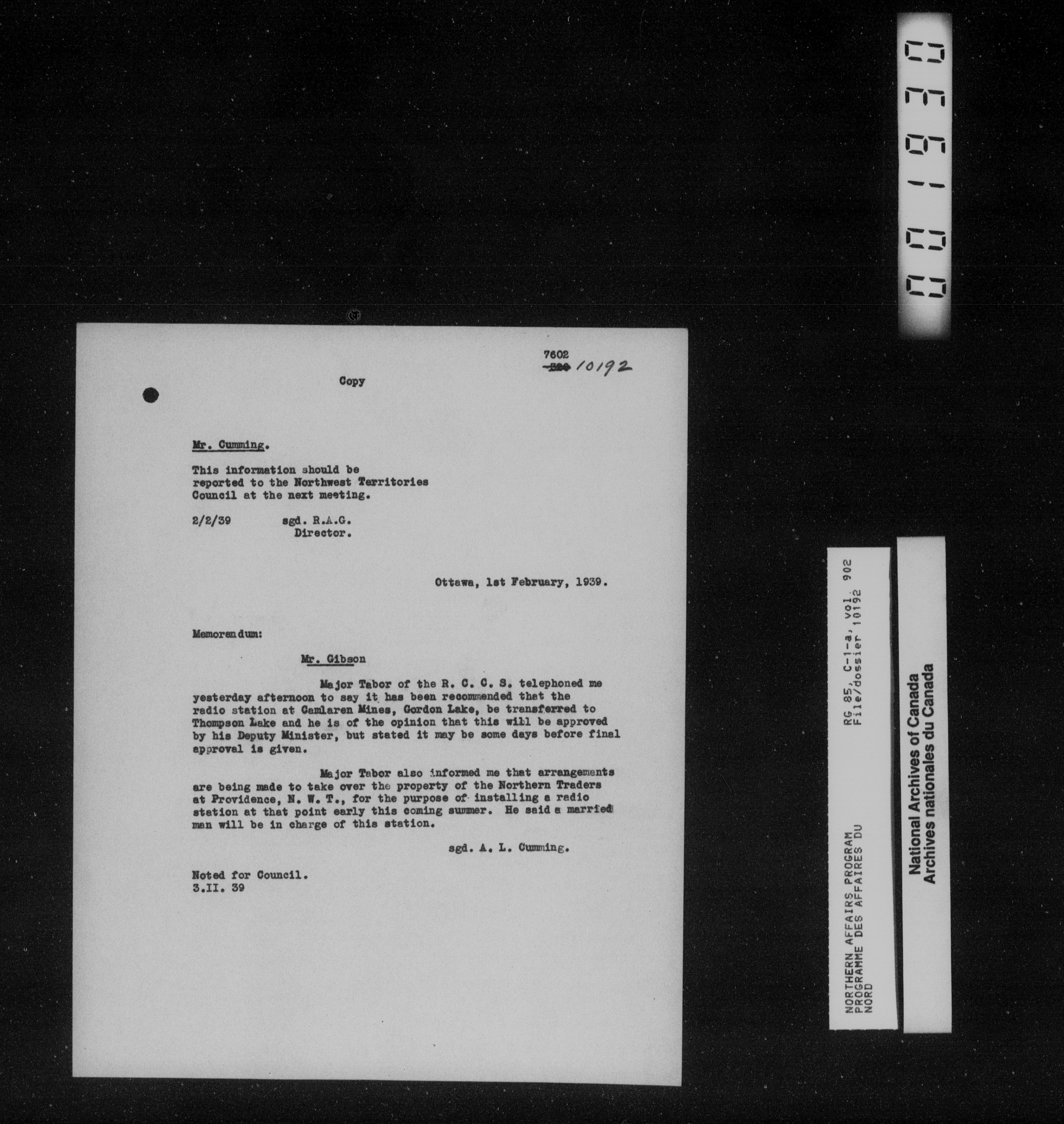 Department of Indian Affairs : Northwest Territories and Yukon Branch, Central Registry files - 13917