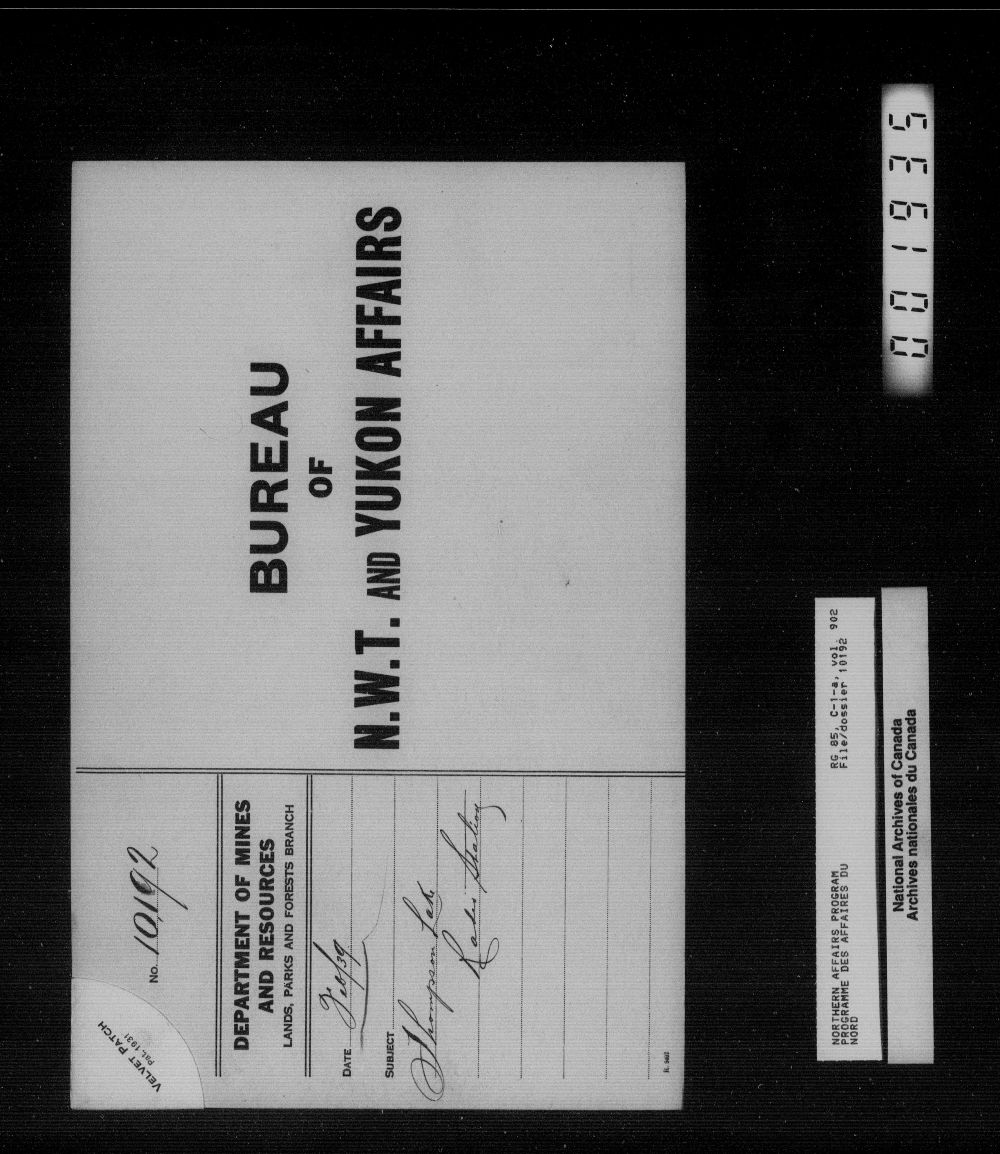 Department of Indian Affairs : Northwest Territories and Yukon Branch, Central Registry files - 13917