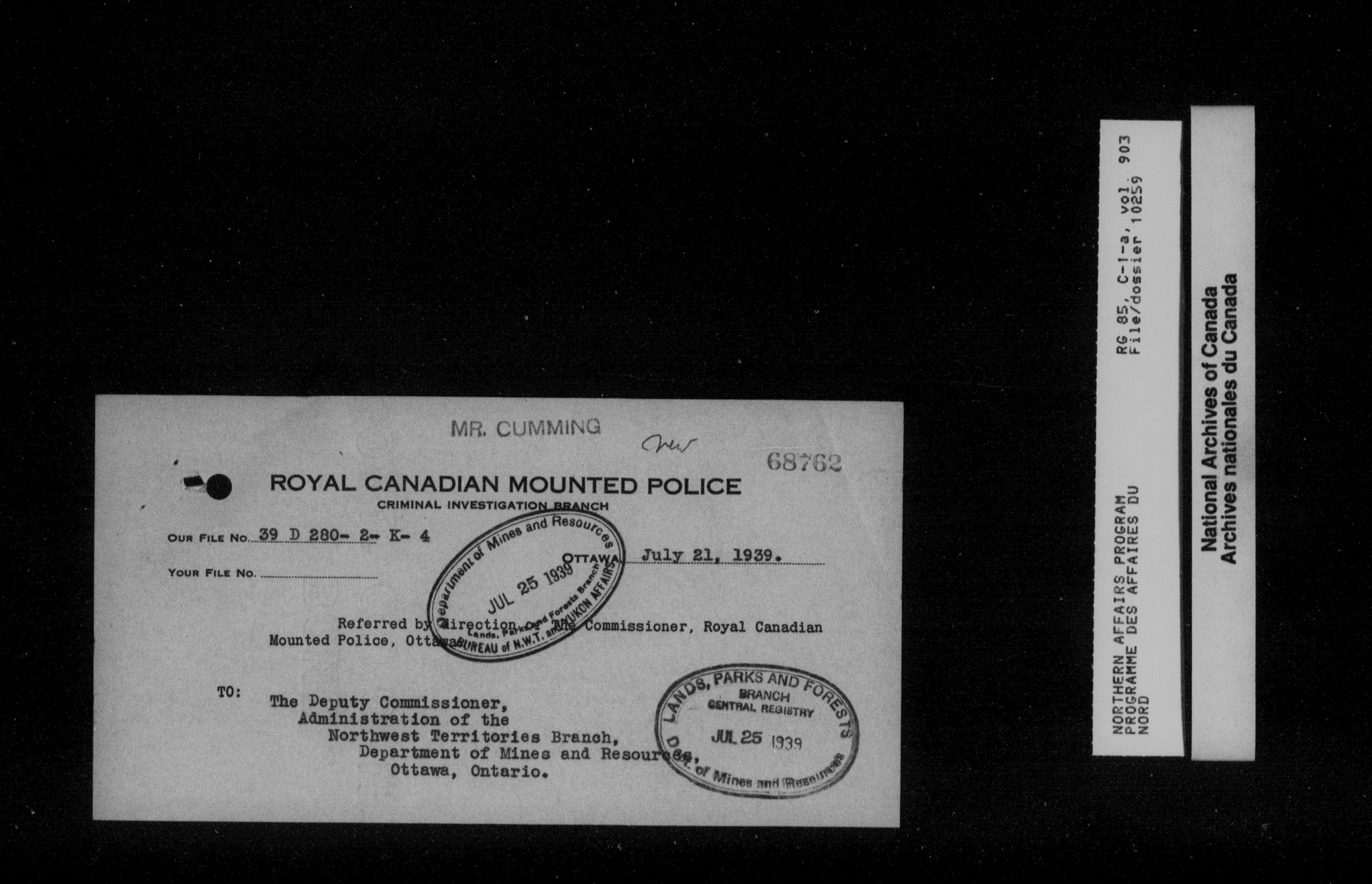 Department of Indian Affairs : Northwest Territories and Yukon Branch, Central Registry files - 13918