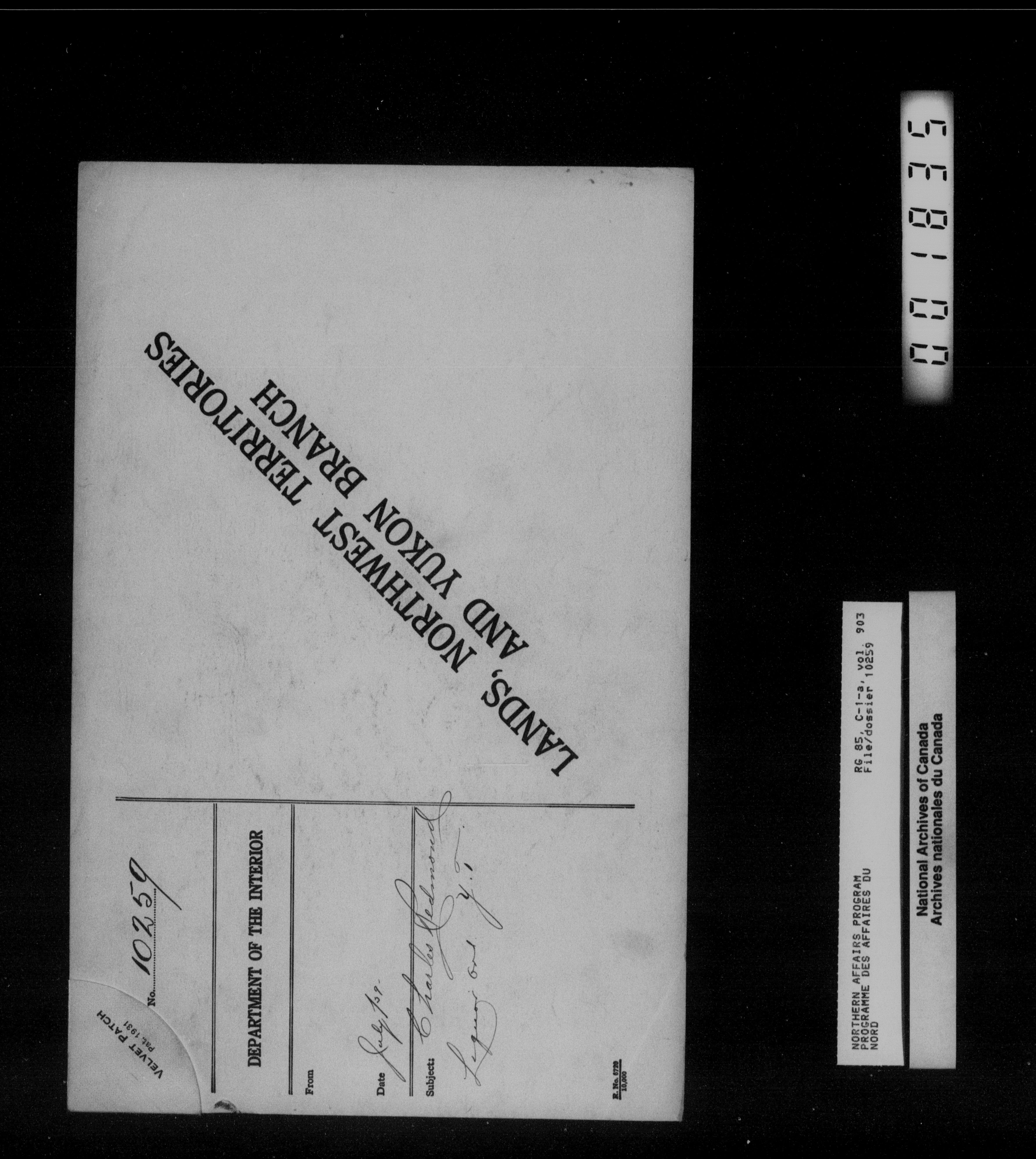 Department of Indian Affairs : Northwest Territories and Yukon Branch, Central Registry files - 13918