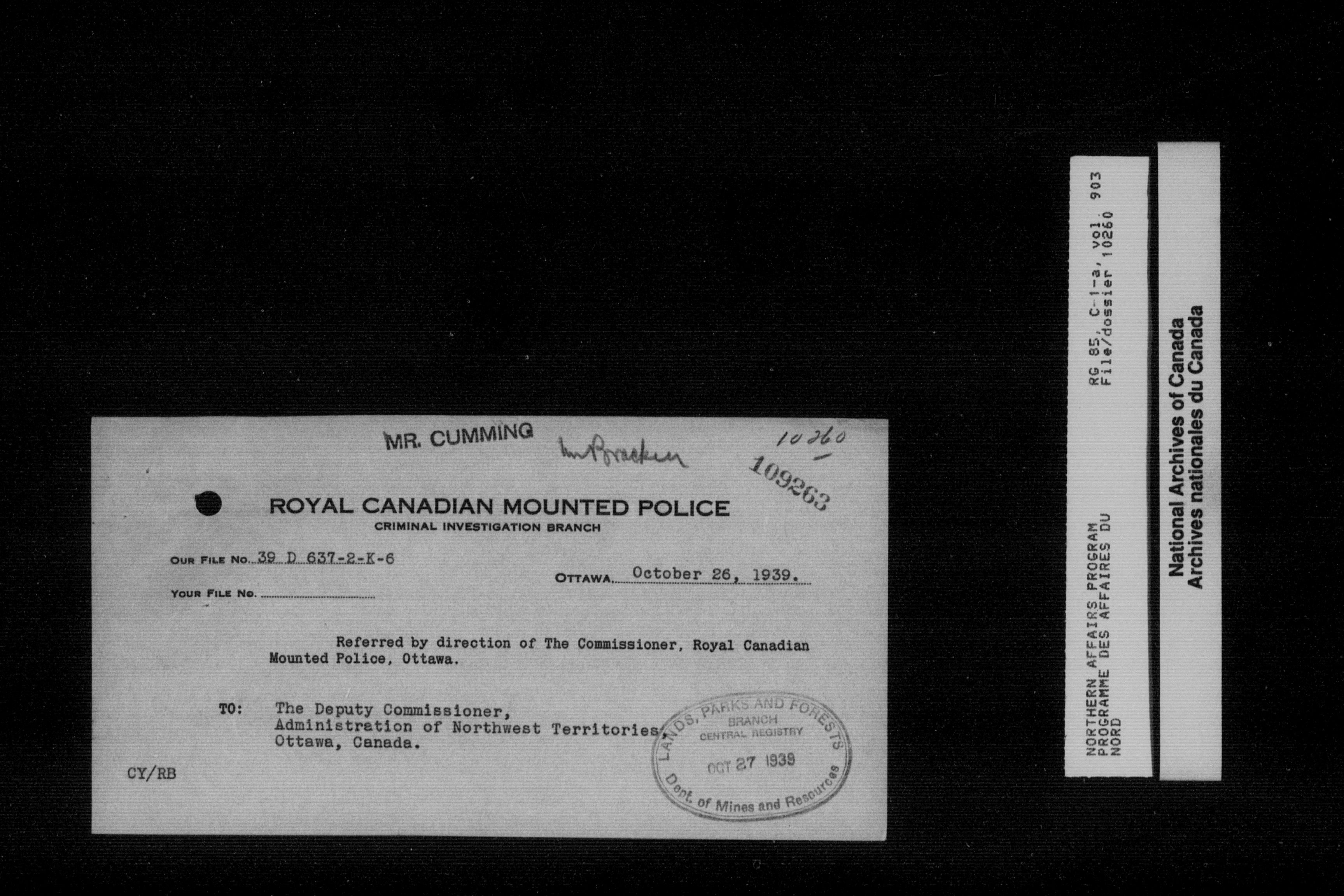 Department of Indian Affairs : Northwest Territories and Yukon Branch, Central Registry files - 13918