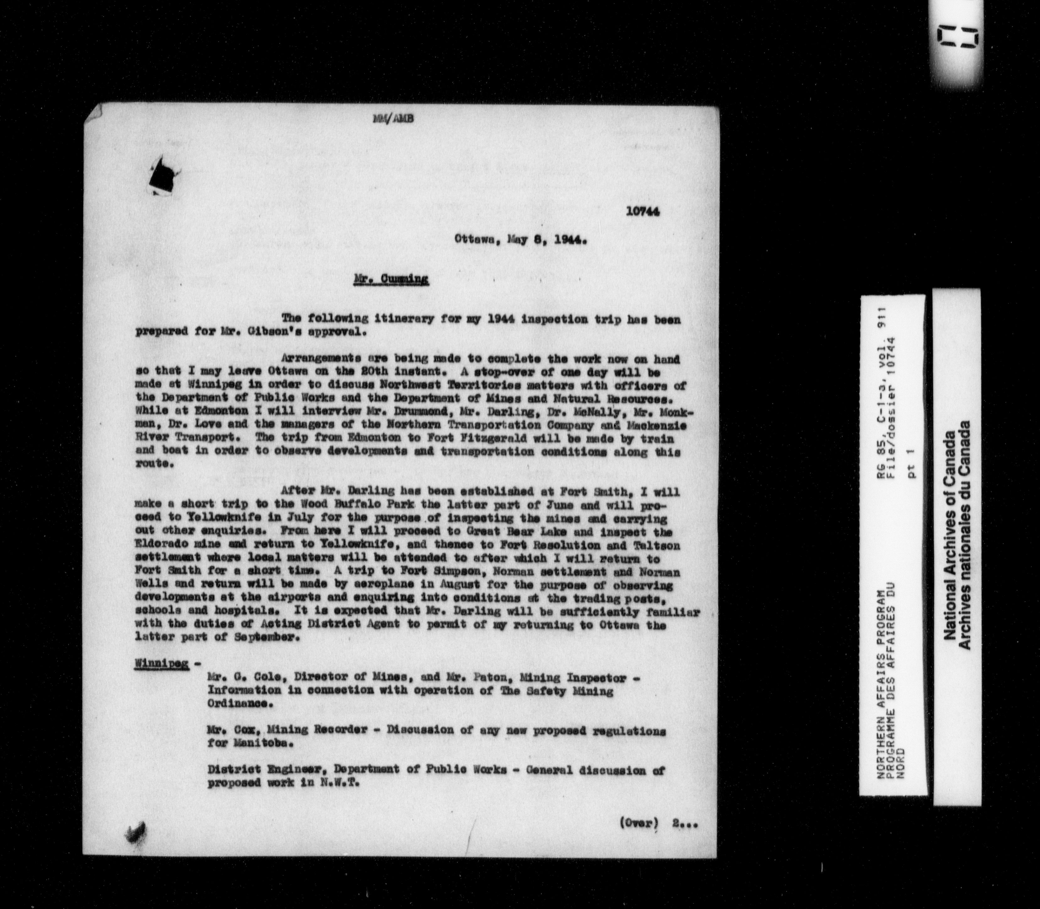 Department of Indian Affairs : Northwest Territories and Yukon Branch, Central Registry files - 13924