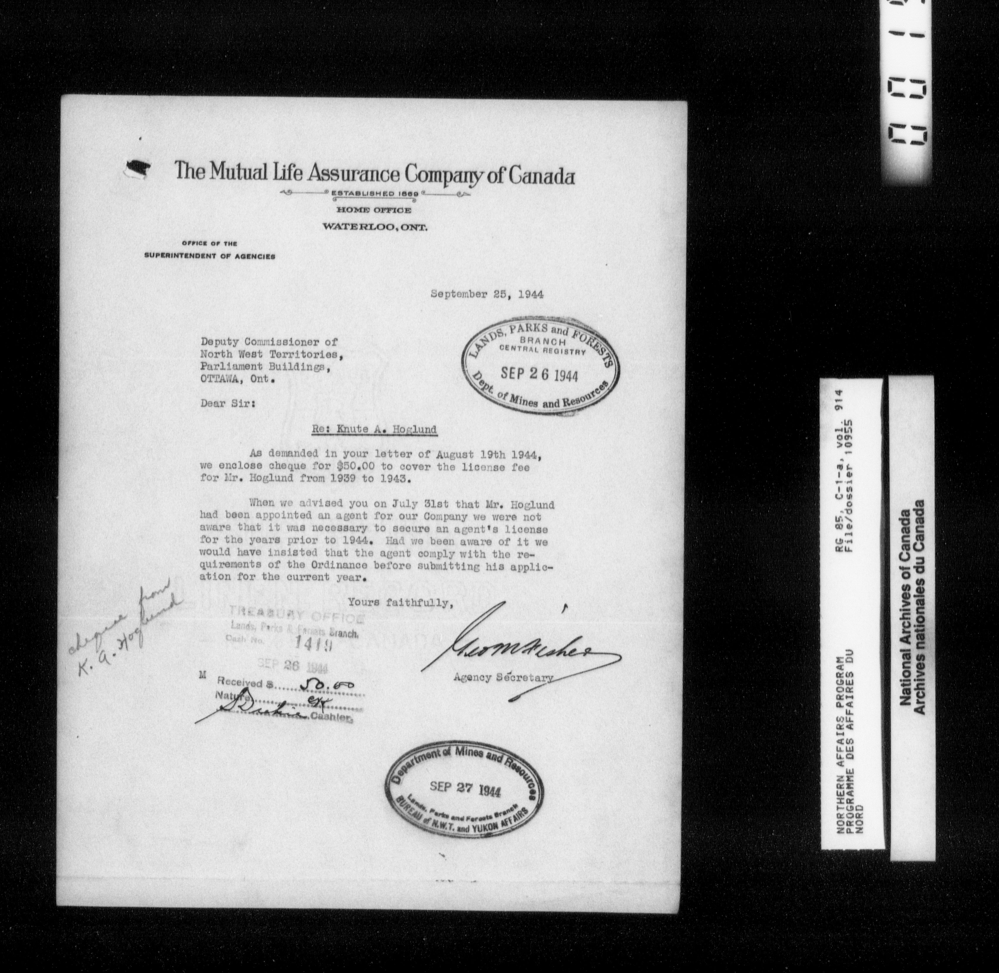 Department of Indian Affairs : Northwest Territories and Yukon Branch : T-13925