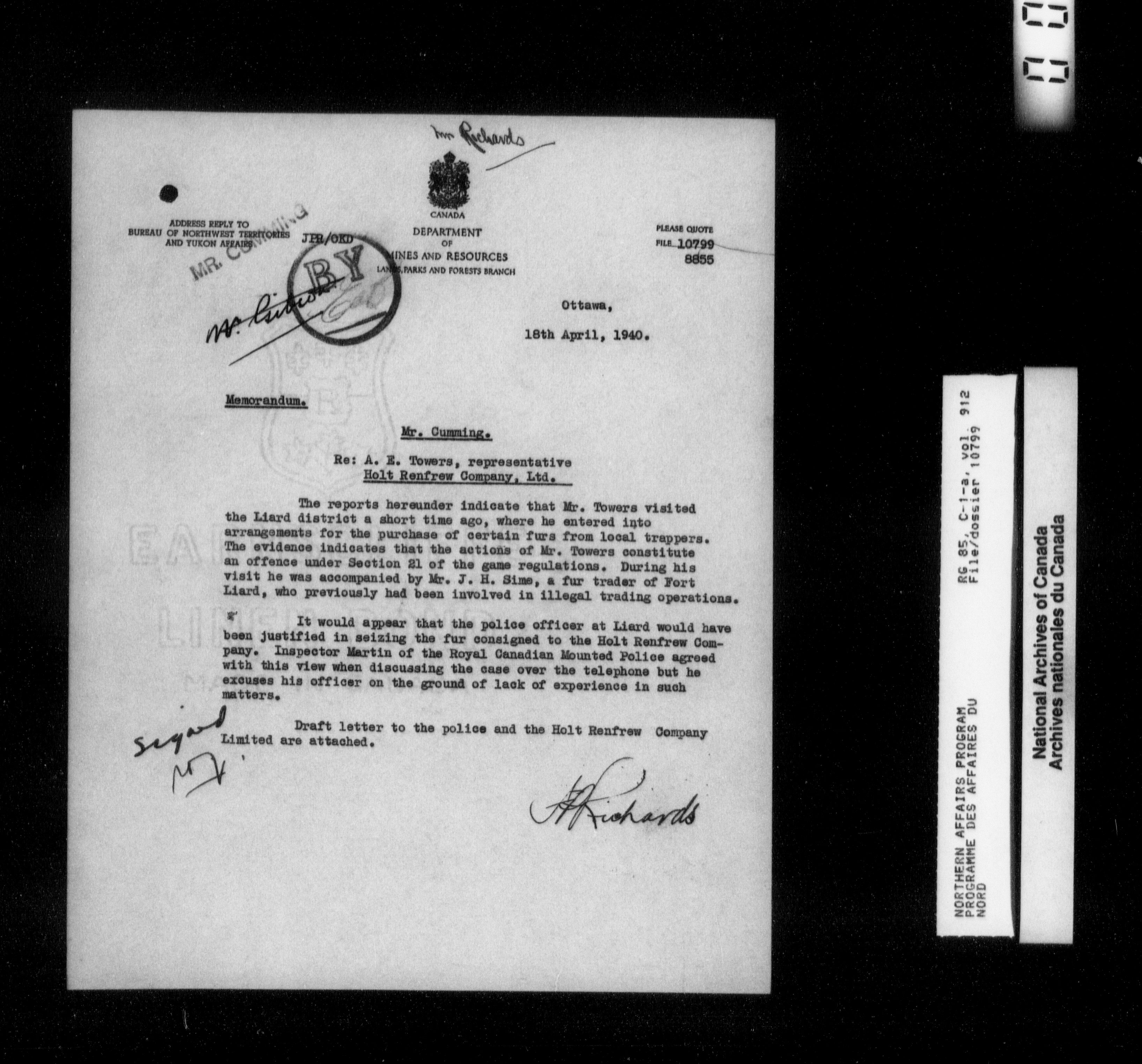 Department of Indian Affairs : Northwest Territories and Yukon Branch, Central Registry files - 13925