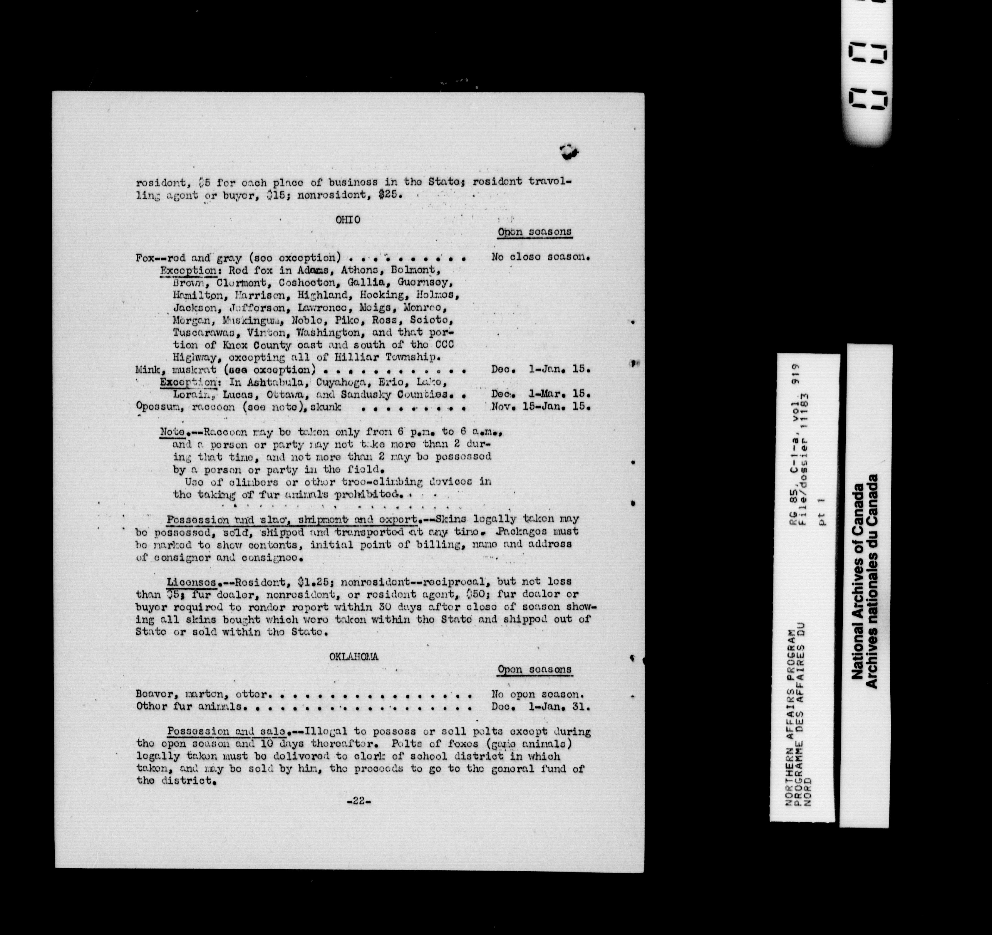 Department of Indian Affairs : Northwest Territories and Yukon Branch, Central Registry files - 13928
