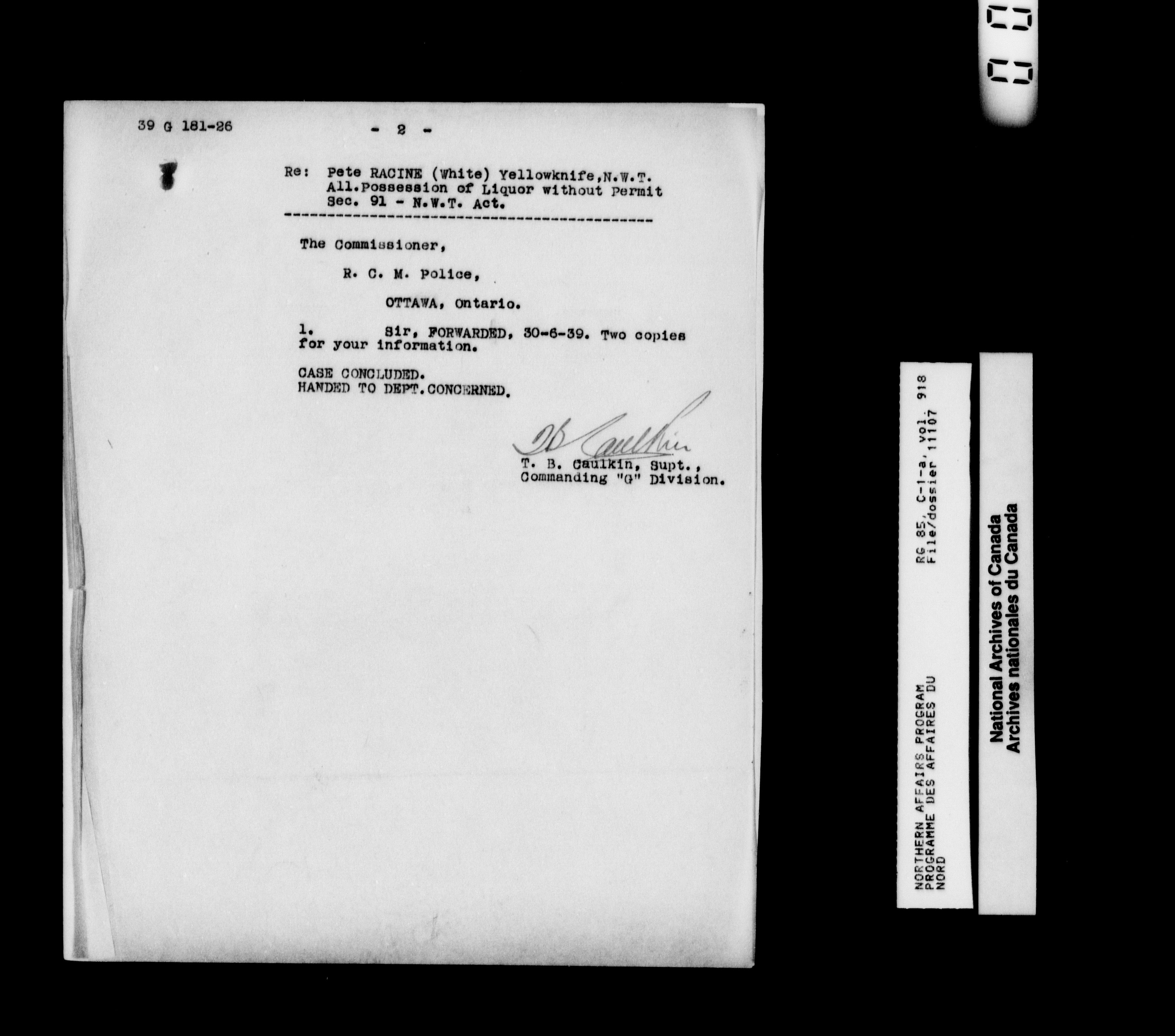 Department of Indian Affairs : Northwest Territories and Yukon Branch, Central Registry files - 13928