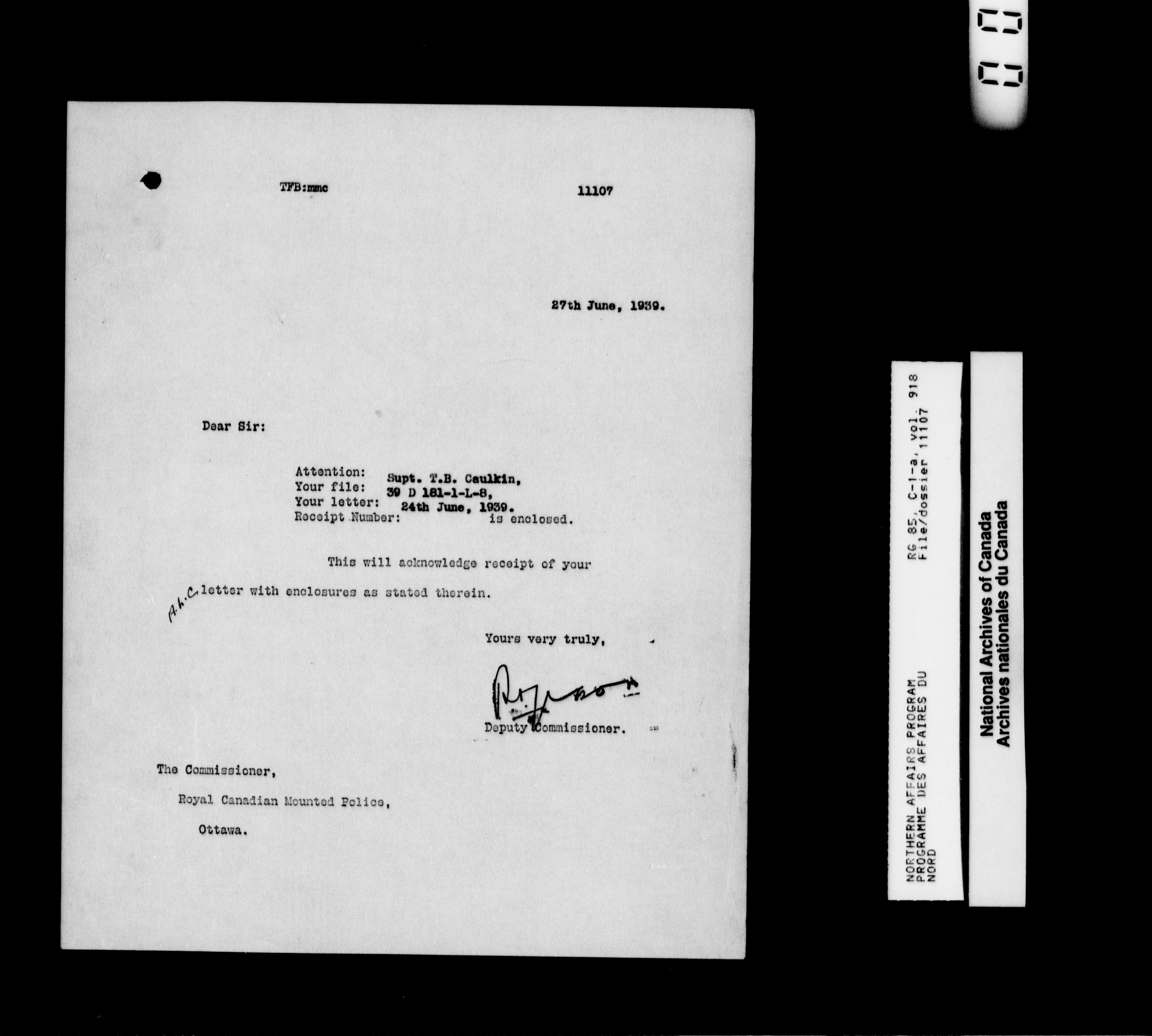Department of Indian Affairs : Northwest Territories and Yukon Branch, Central Registry files - 13928