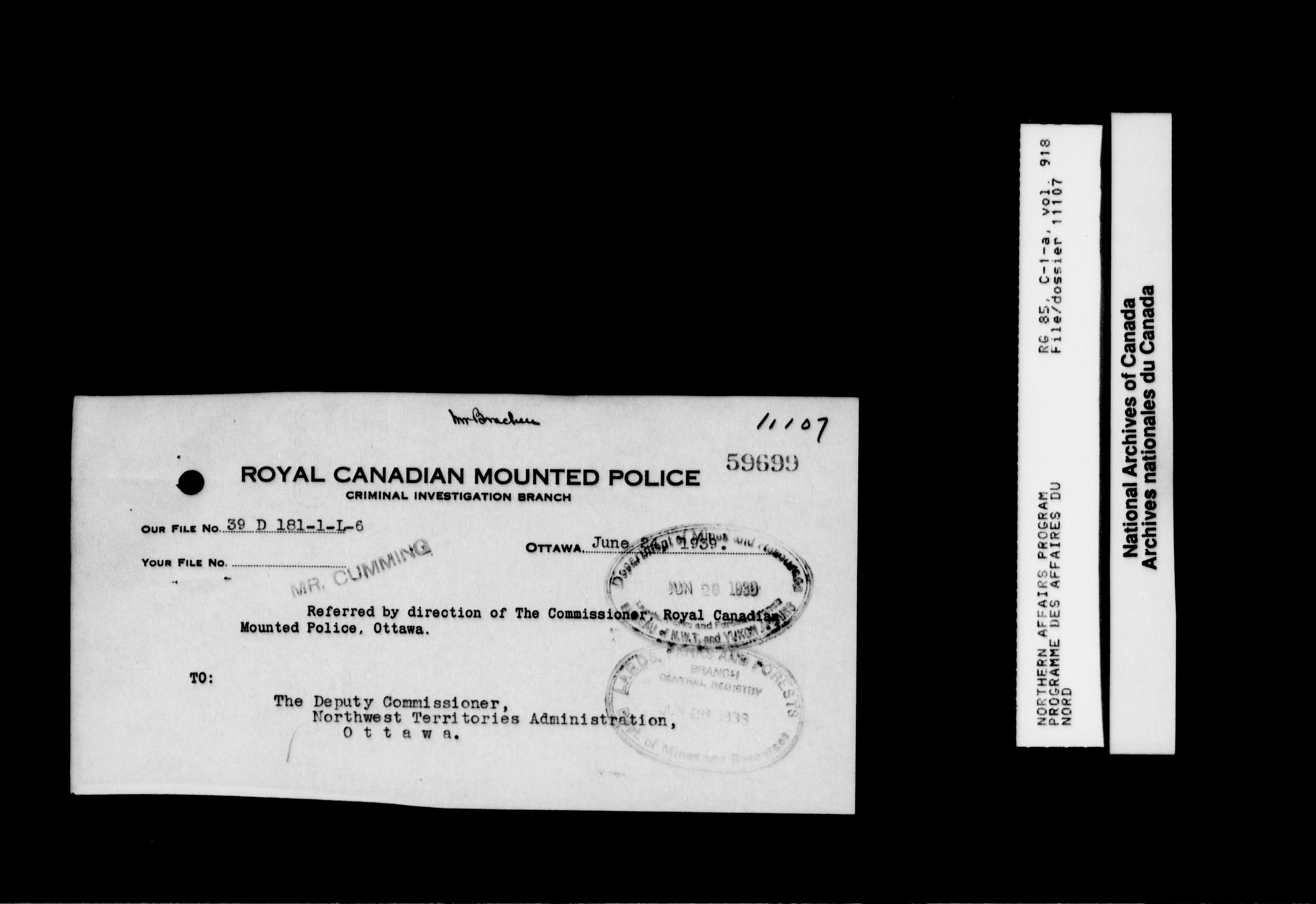 Department of Indian Affairs : Northwest Territories and Yukon Branch, Central Registry files - 13928