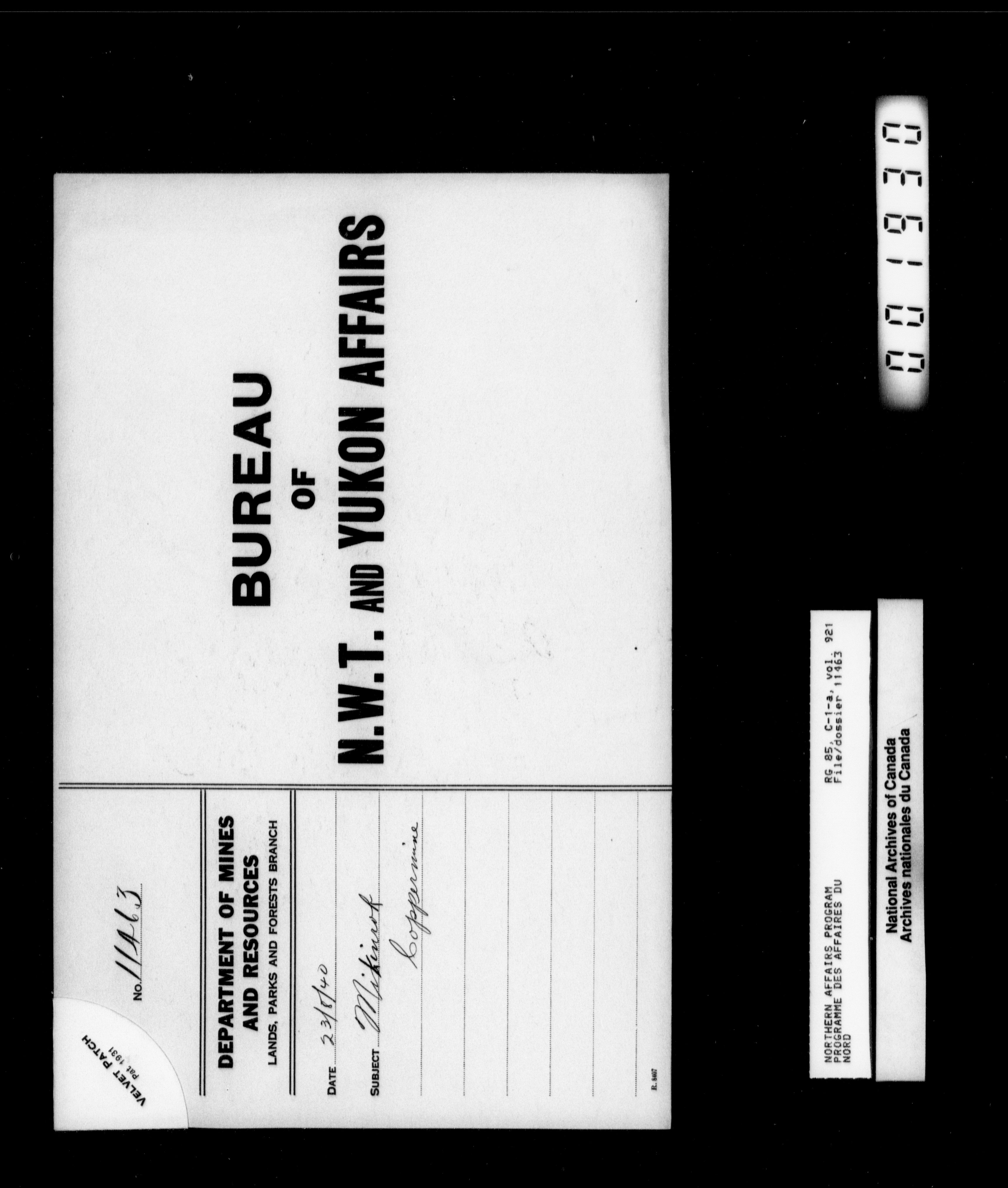 Department of Indian Affairs : Northwest Territories and Yukon Branch : T-13929