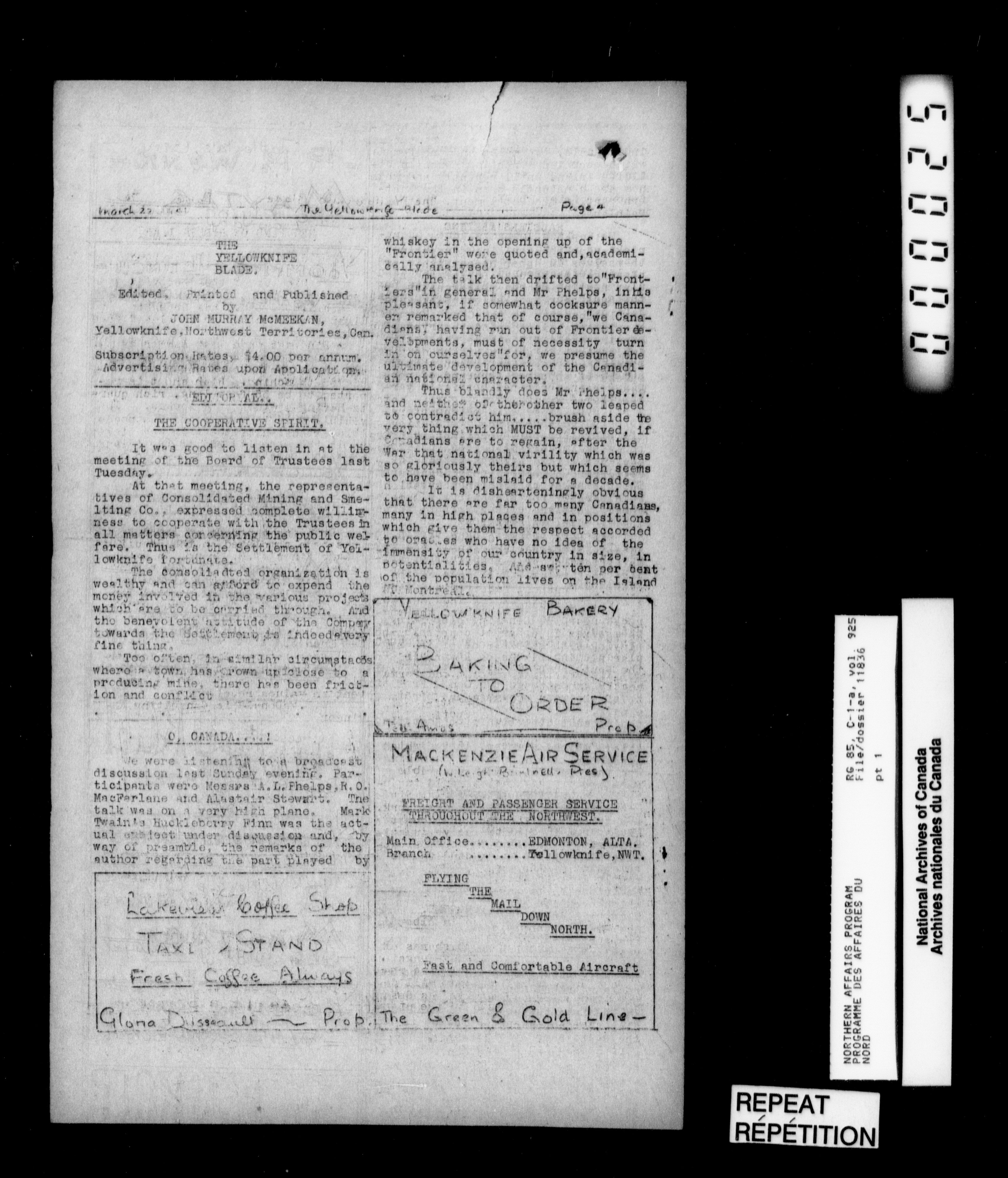 Department of Indian Affairs : Northwest Territories and Yukon Branch, Central Registry files - 13932