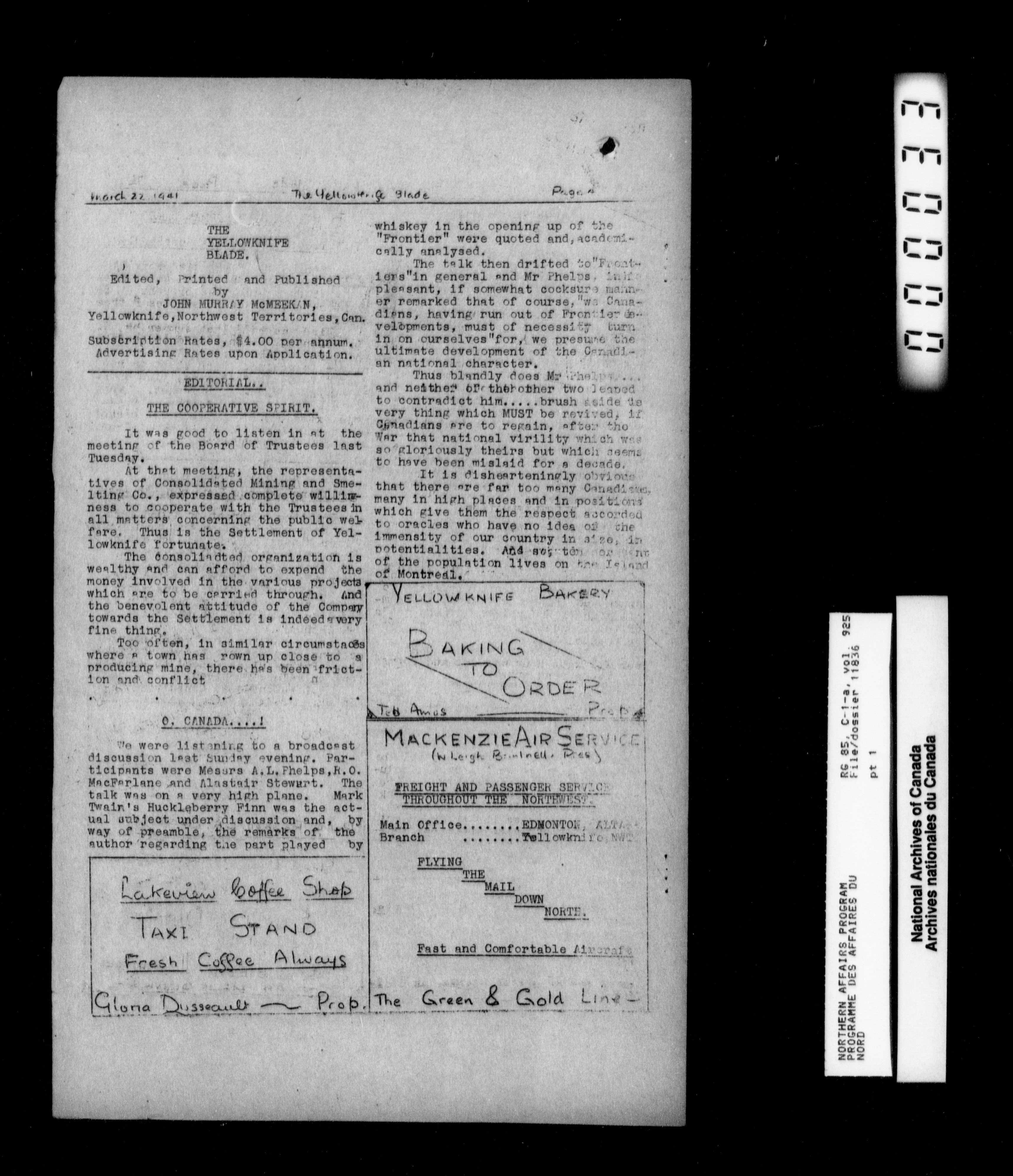 Department of Indian Affairs : Northwest Territories and Yukon Branch, Central Registry files - 13932