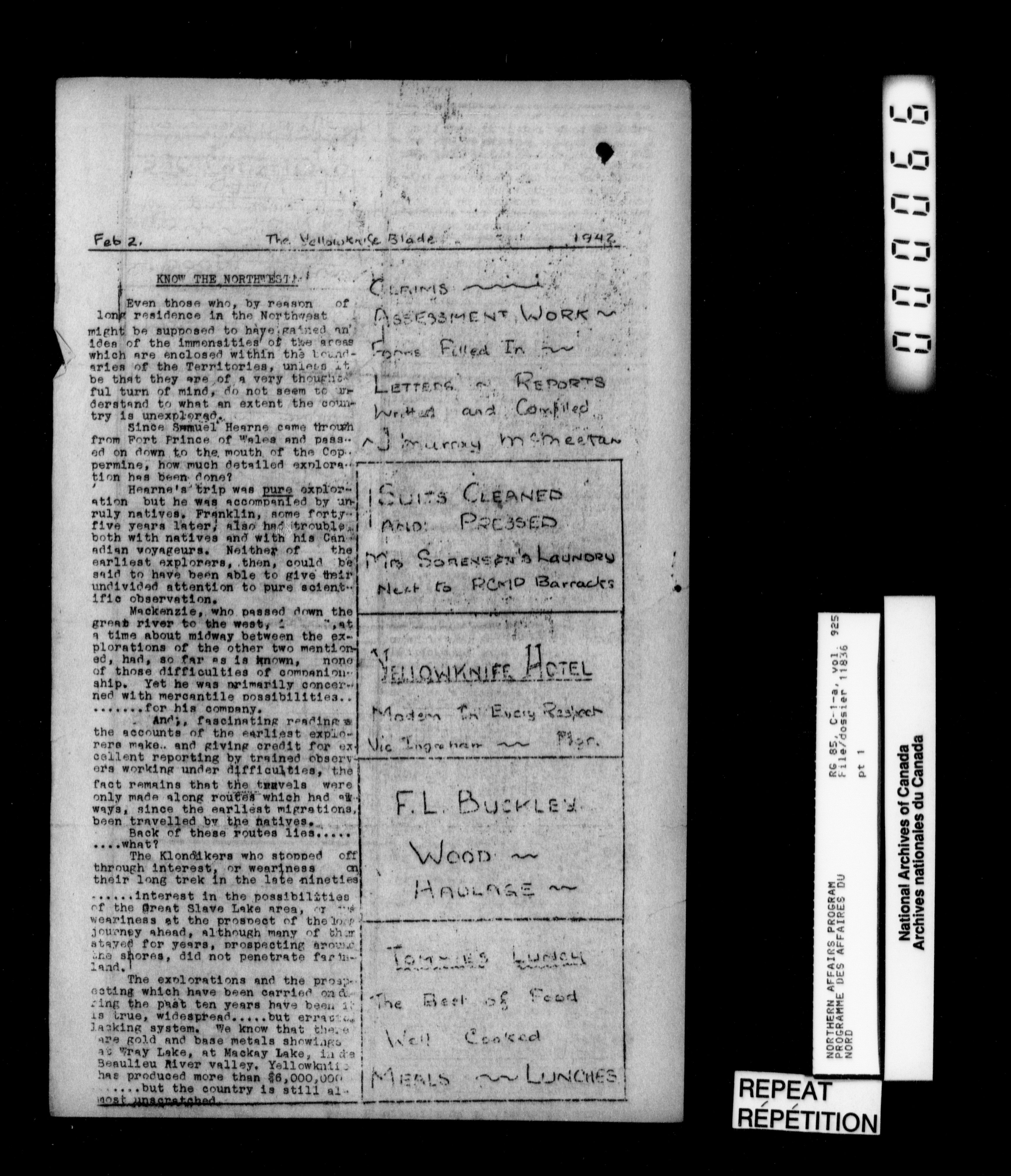 Department of Indian Affairs : Northwest Territories and Yukon Branch, Central Registry files - 13932