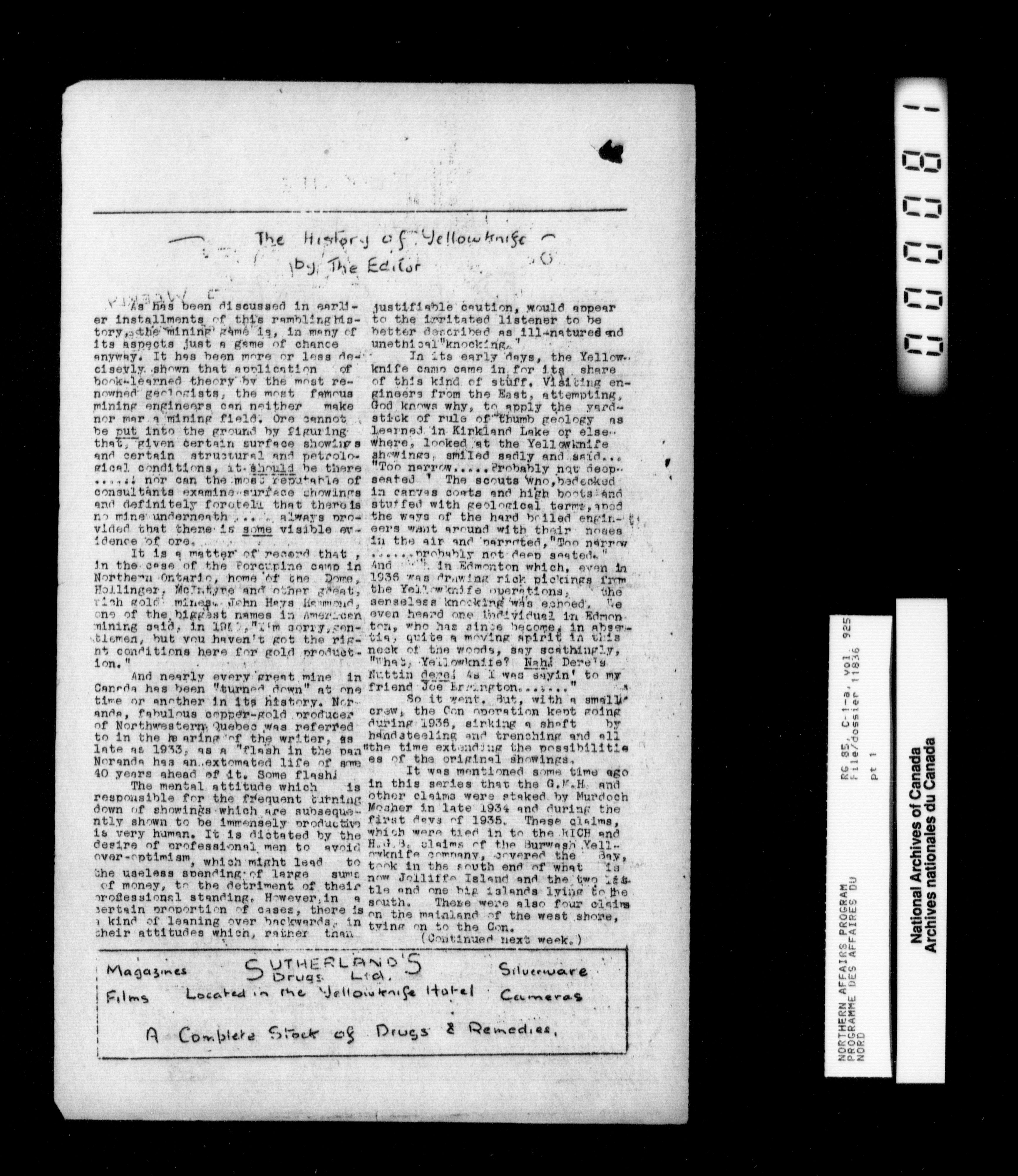 Department of Indian Affairs : Northwest Territories and Yukon Branch, Central Registry files - 13932