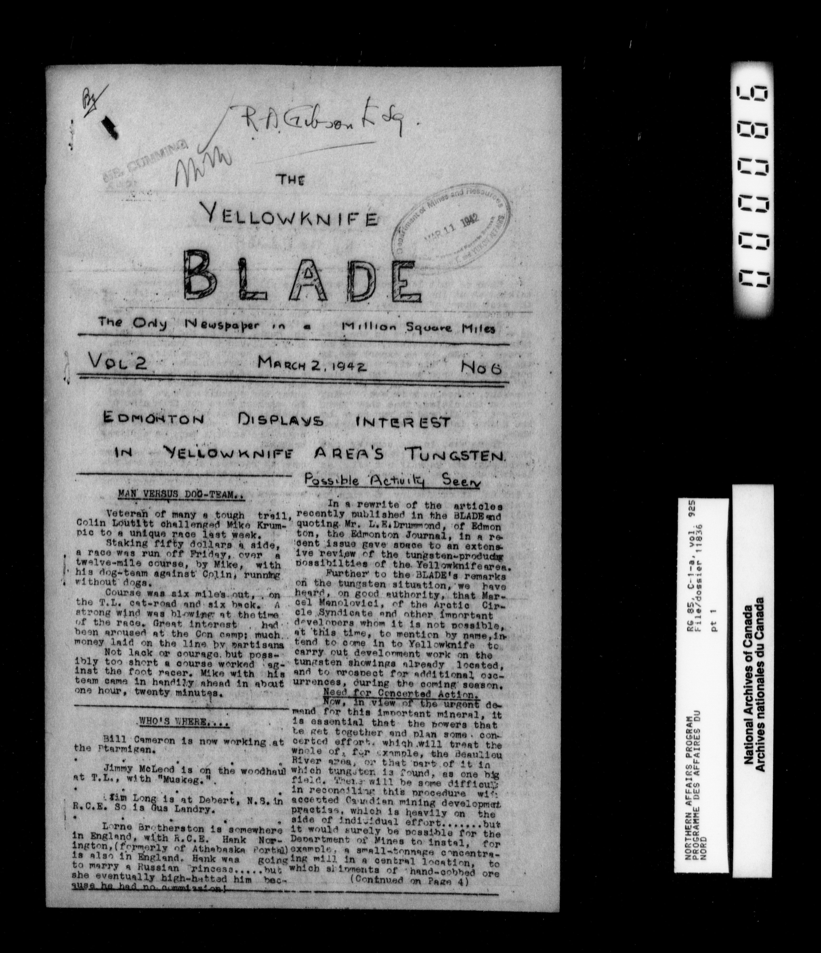 Department of Indian Affairs : Northwest Territories and Yukon Branch, Central Registry files - 13932