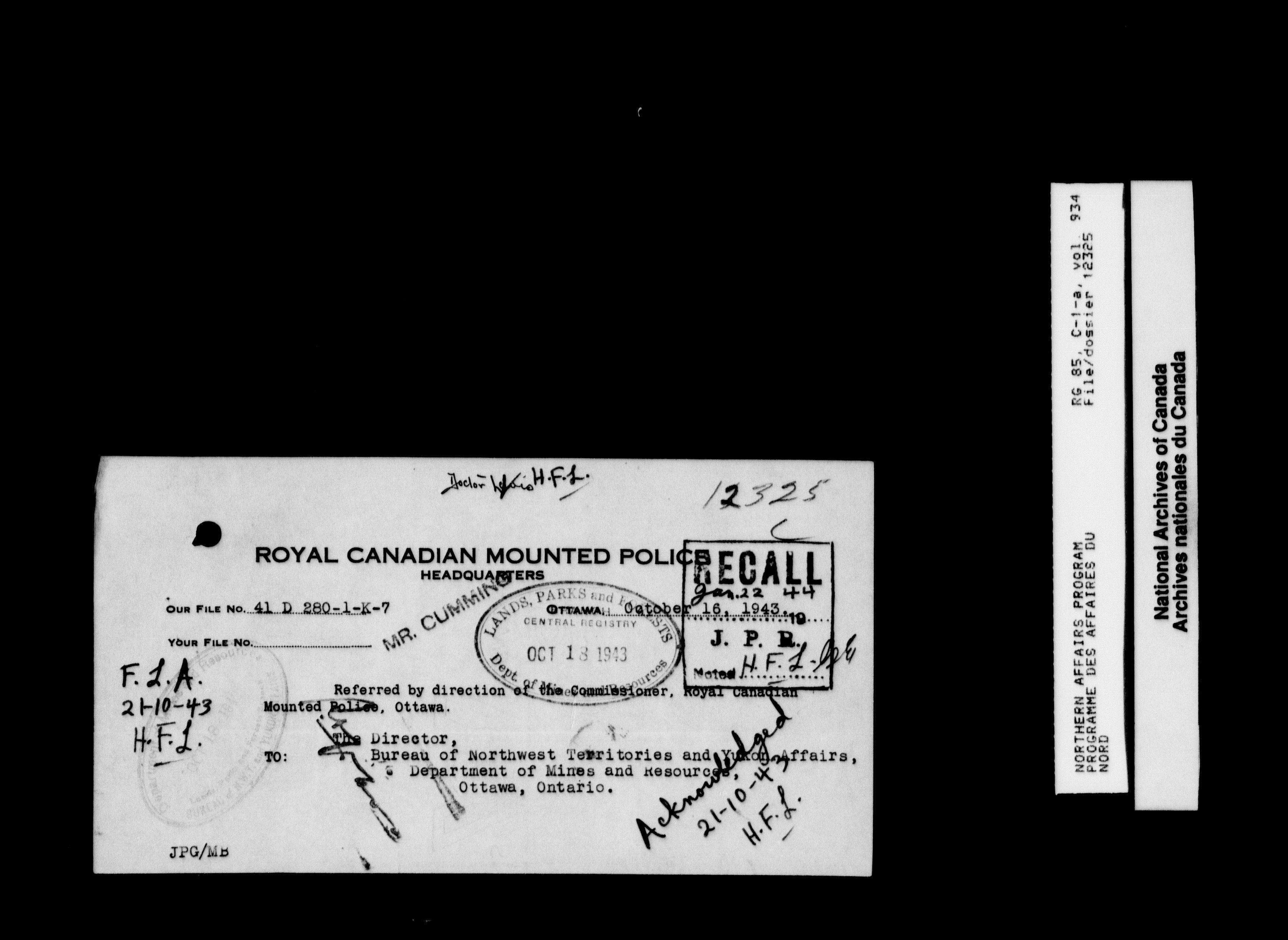 Department of Indian Affairs : Northwest Territories and Yukon Branch, Central Registry files - 13937
