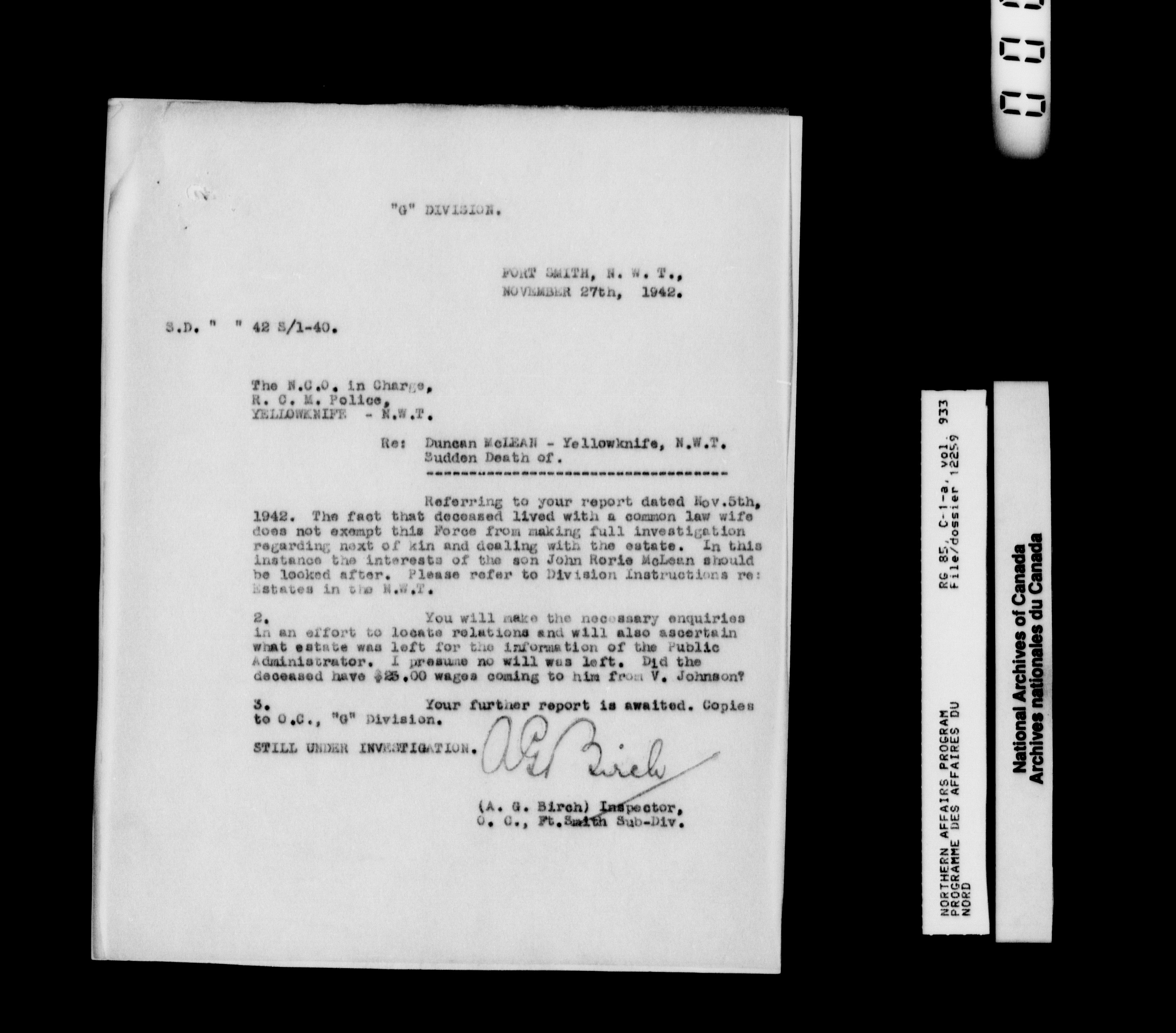 Department of Indian Affairs : Northwest Territories and Yukon Branch, Central Registry files - 13937