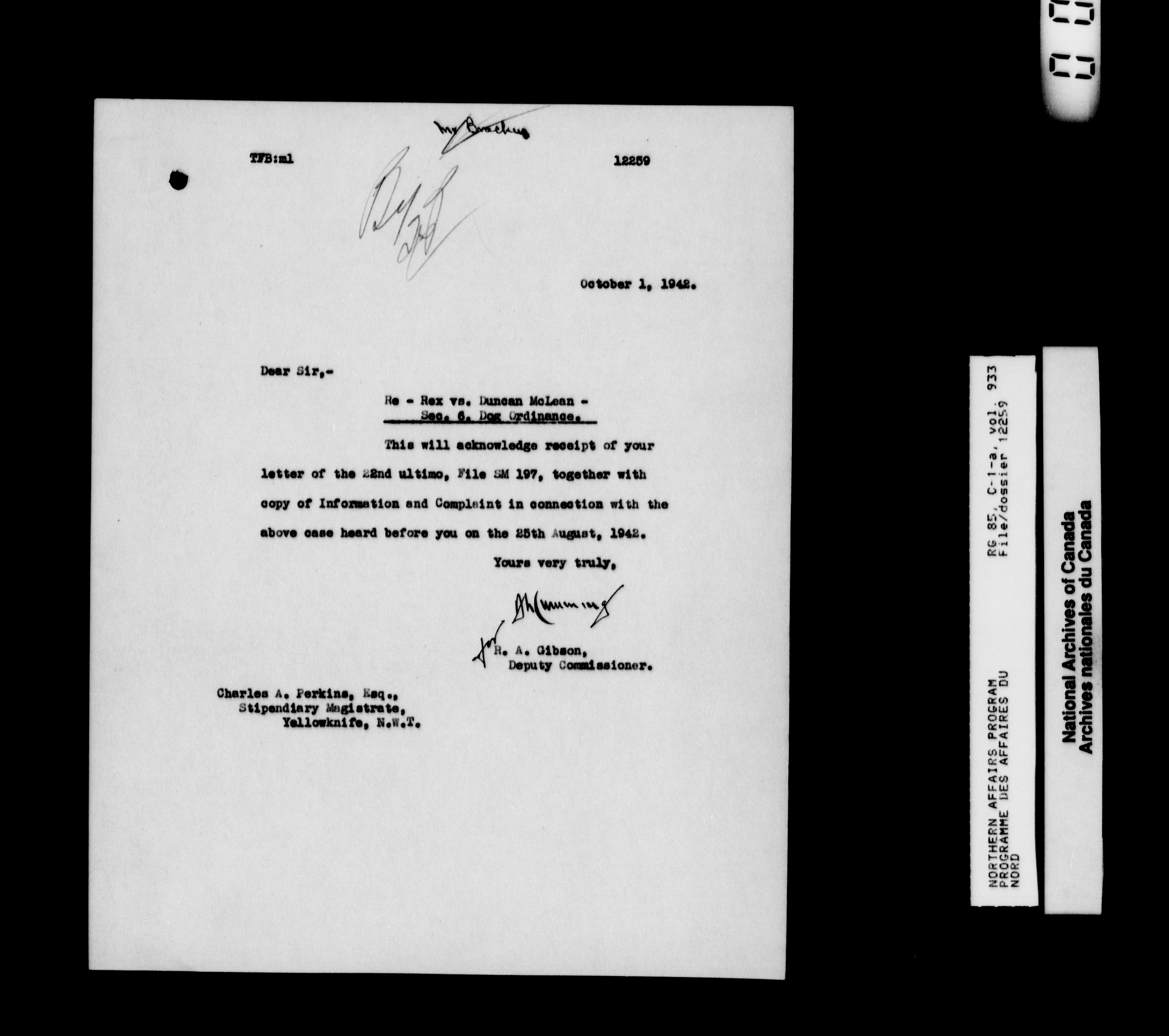 Department of Indian Affairs : Northwest Territories and Yukon Branch, Central Registry files - 13937