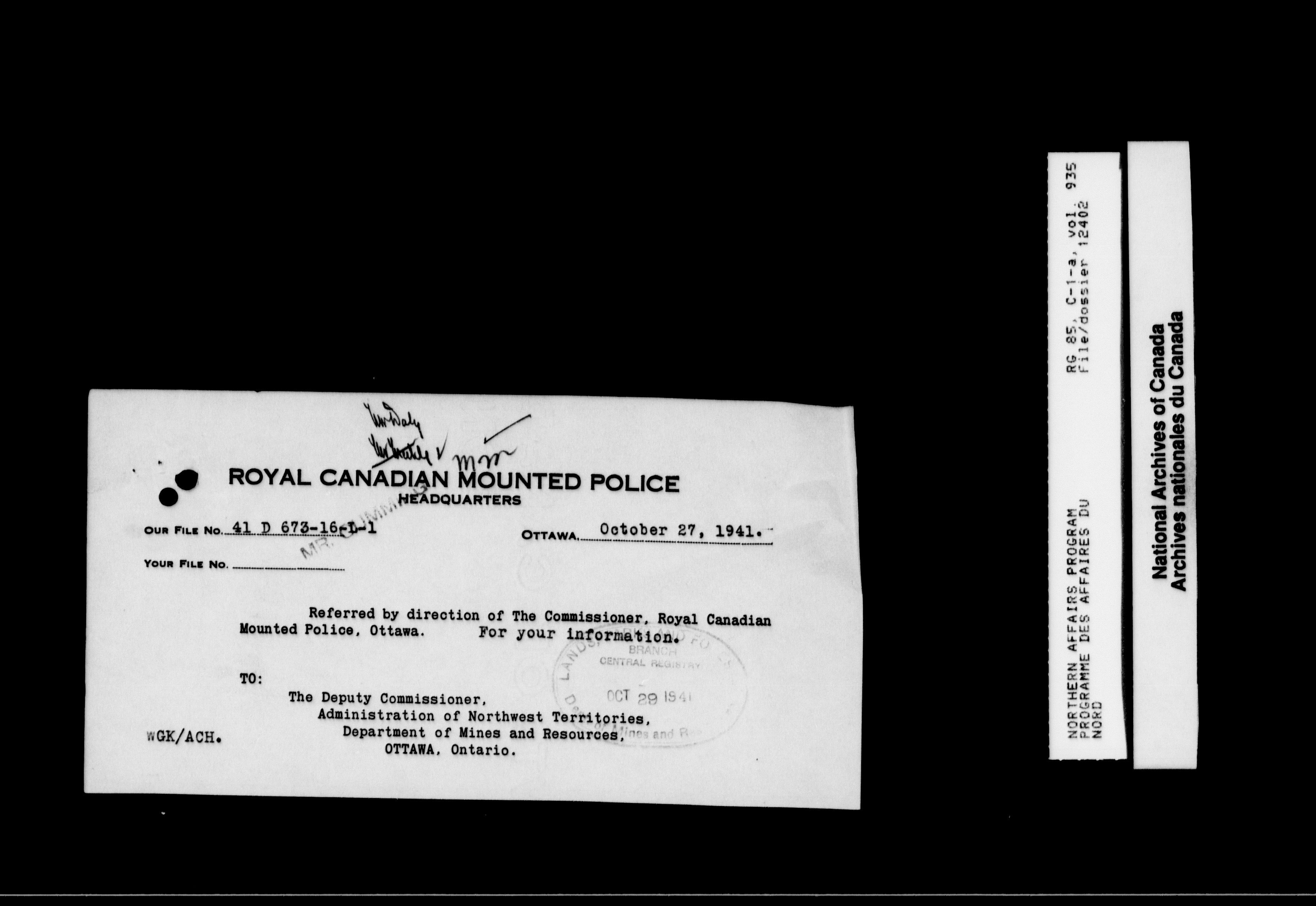 Department of Indian Affairs : Northwest Territories and Yukon Branch, Central Registry files - 13938