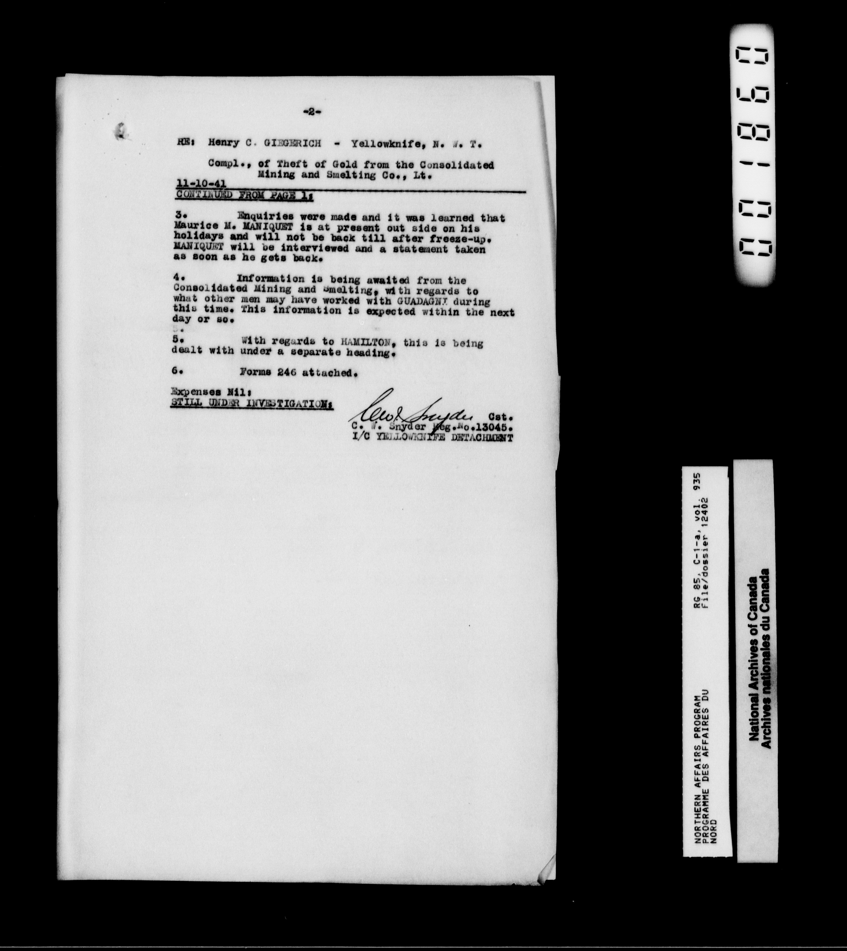 Department of Indian Affairs : Northwest Territories and Yukon Branch, Central Registry files - 13938