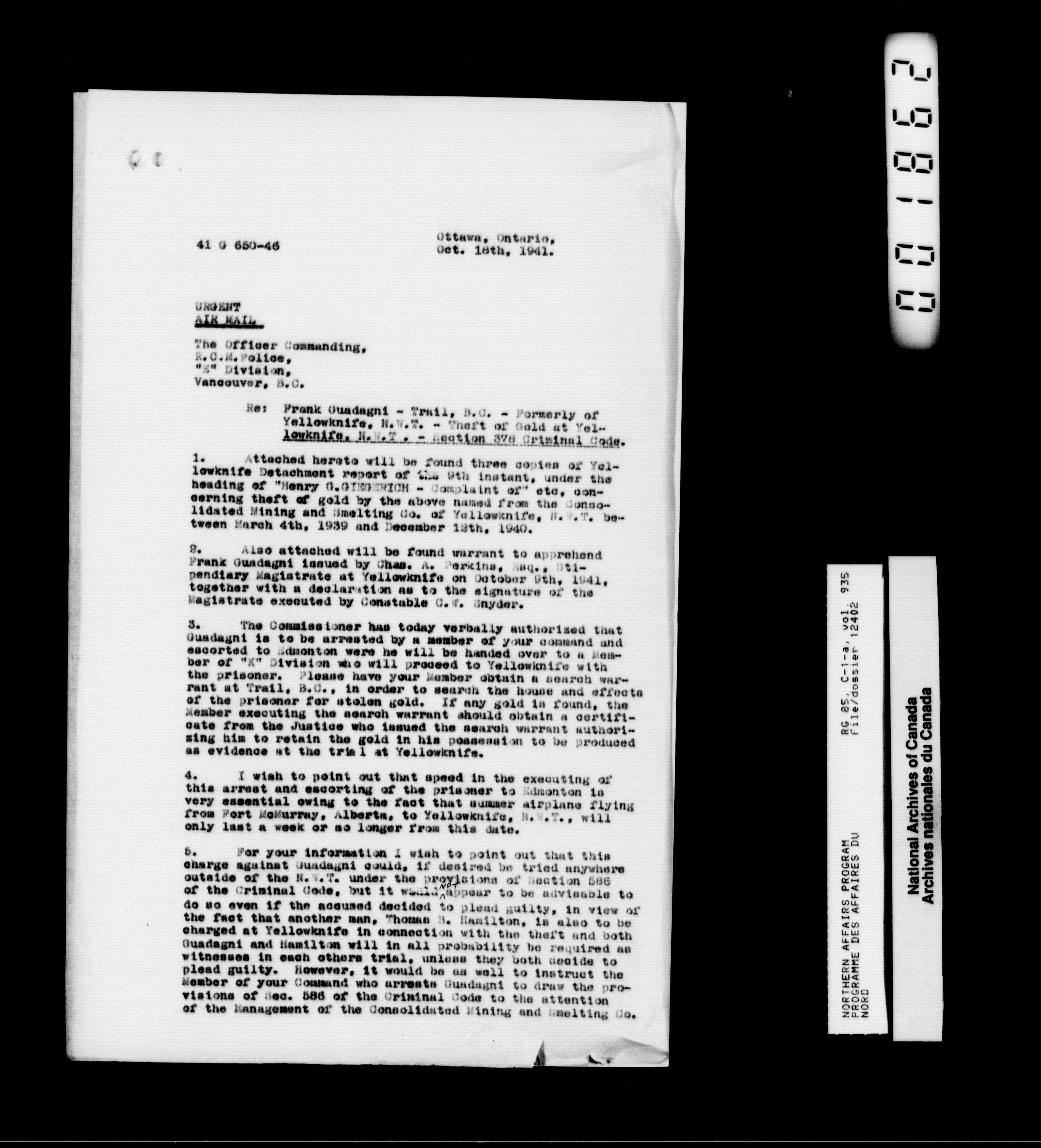 Department of Indian Affairs : Northwest Territories and Yukon Branch, Central Registry files - 13938