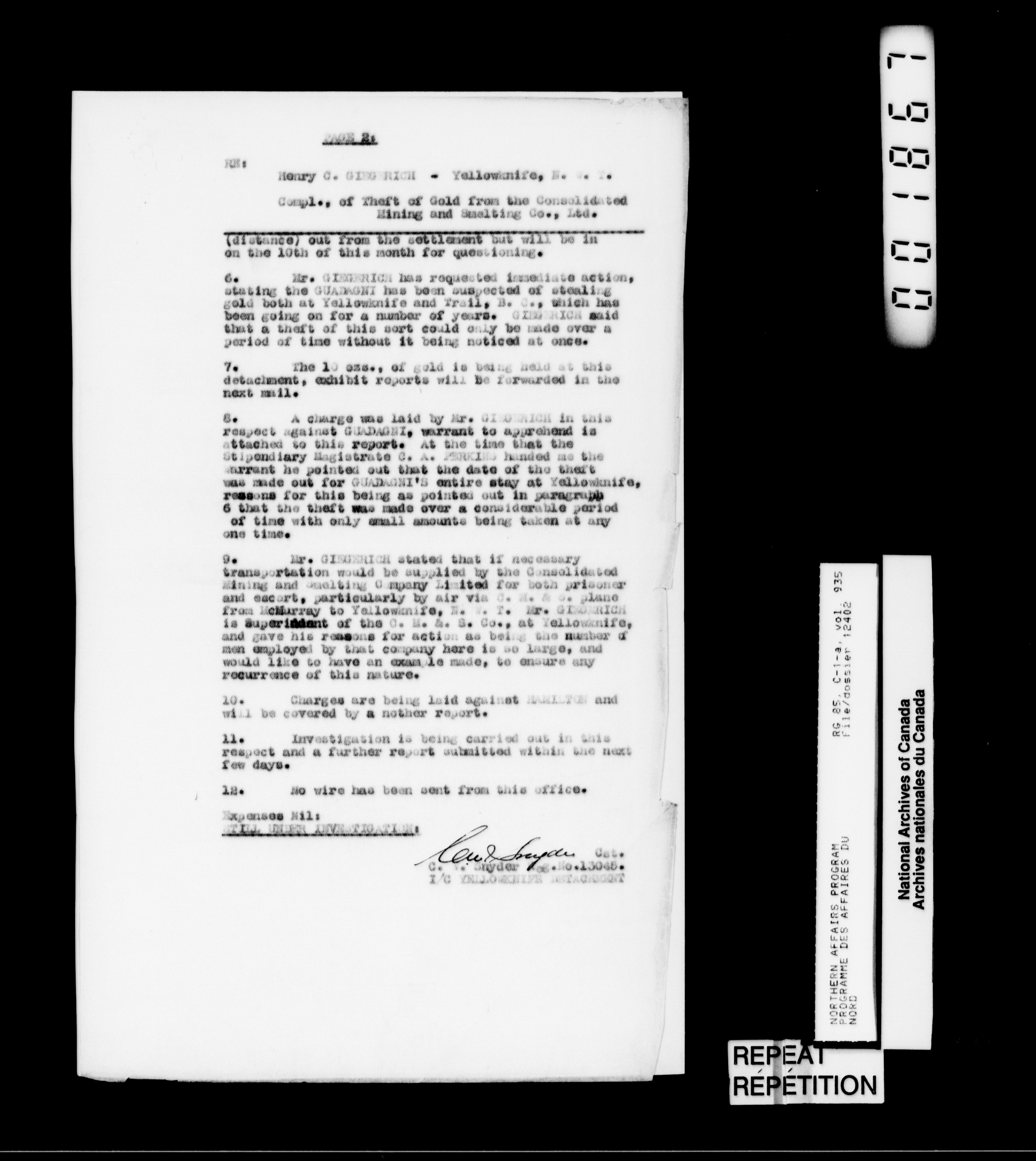 Department of Indian Affairs : Northwest Territories and Yukon Branch, Central Registry files - 13938