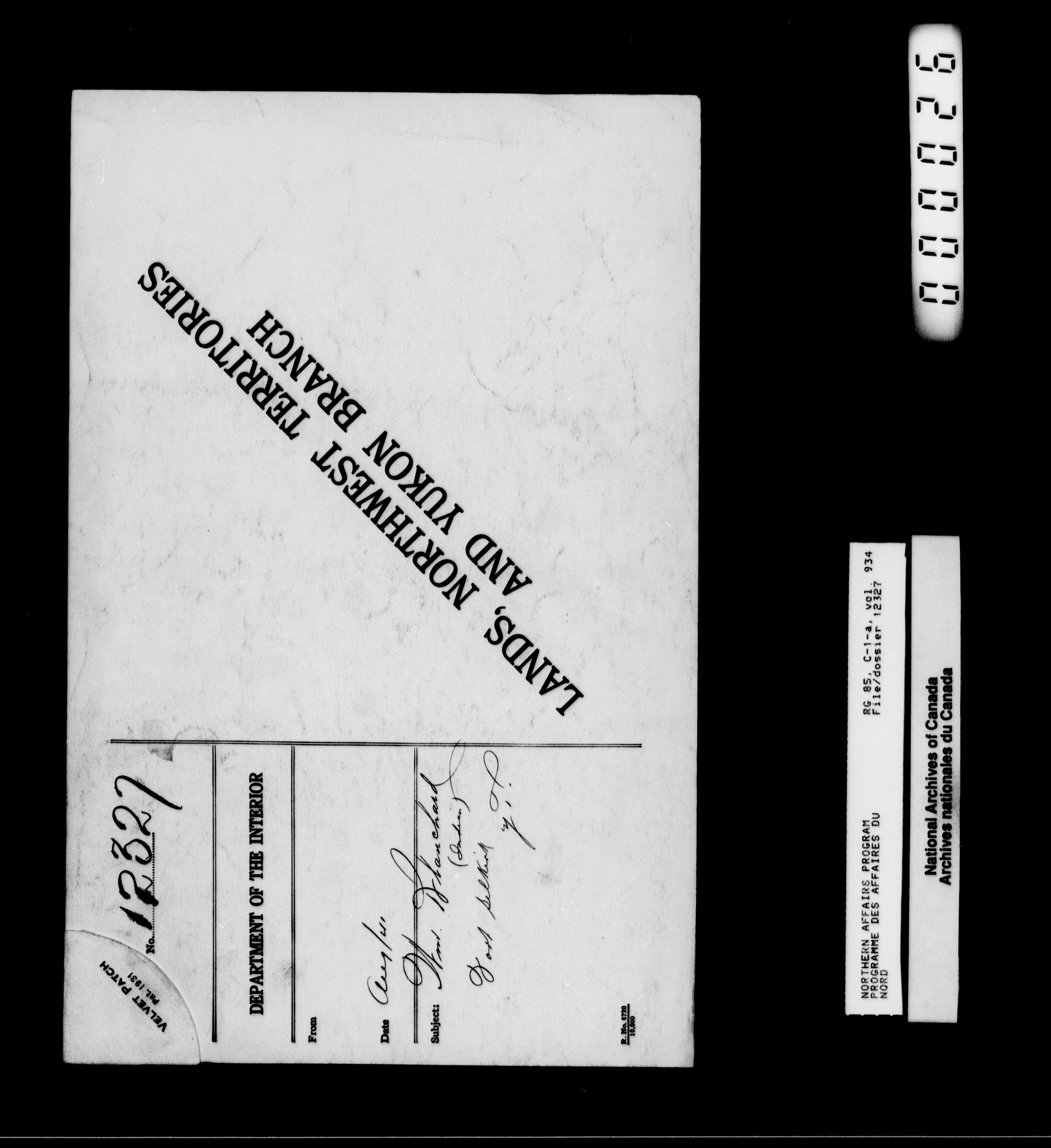 Department of Indian Affairs : Northwest Territories and Yukon Branch, Central Registry files - 13938